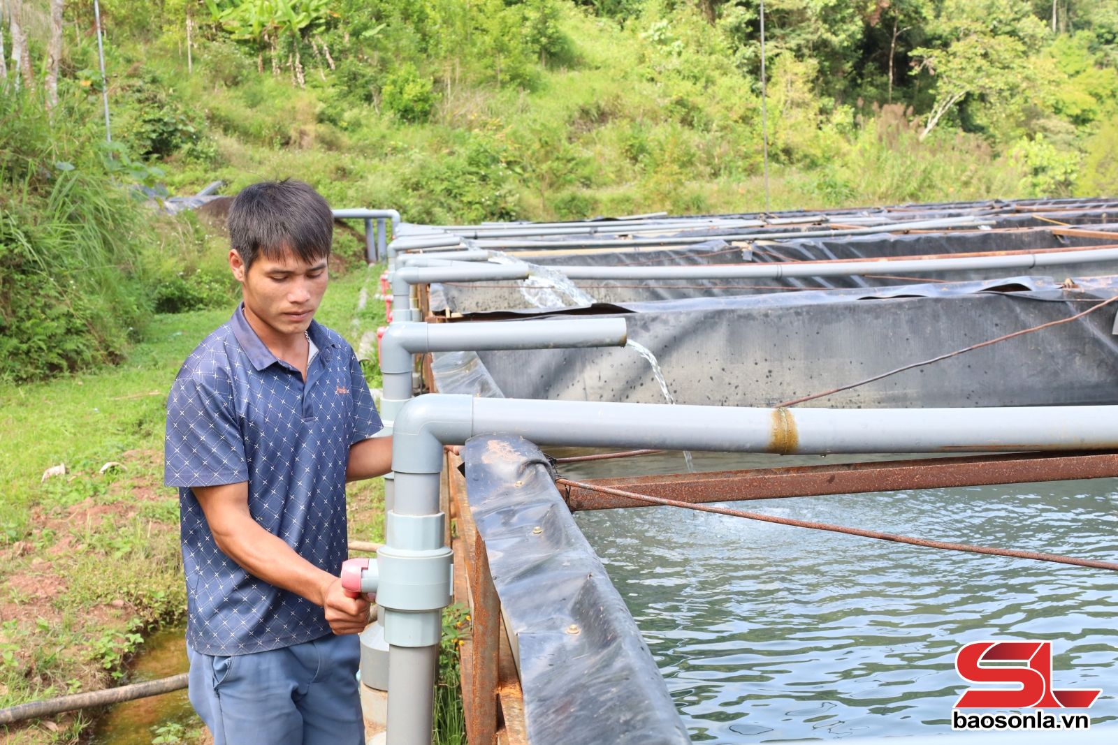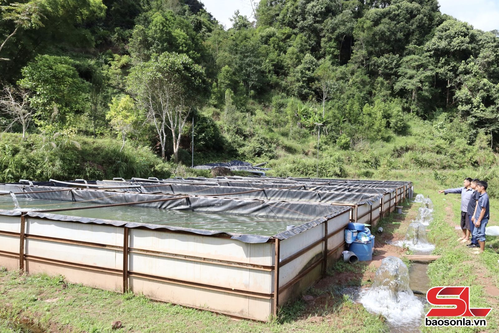 Mô hình nuôi cá tầm của gia đình anh Lò Văn Sơn bản Nậm Ngùa, xã Mường Chiên.