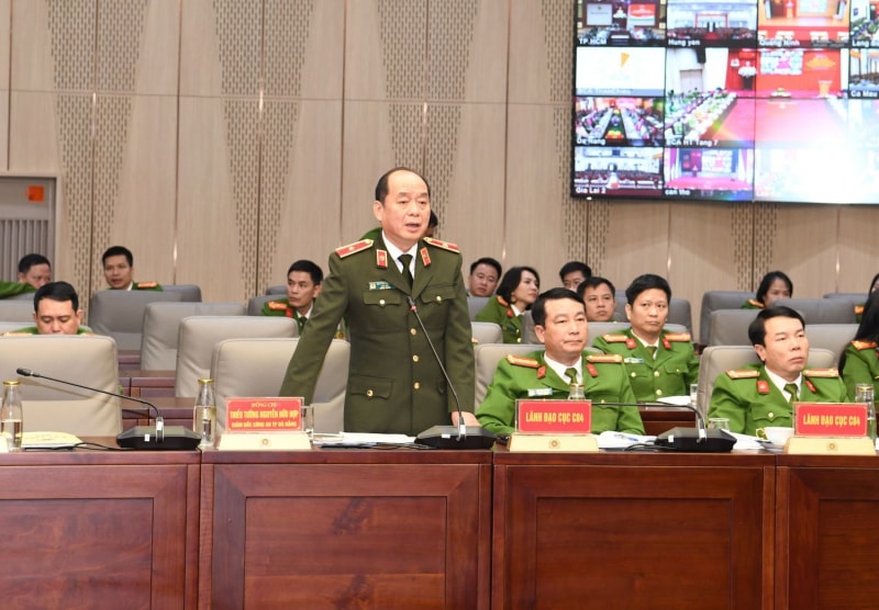 Cục trưởng Cục C04, Bộ Công an, Thiếu tướng Ngô Thanh Bình phát biểu tại hội nghị