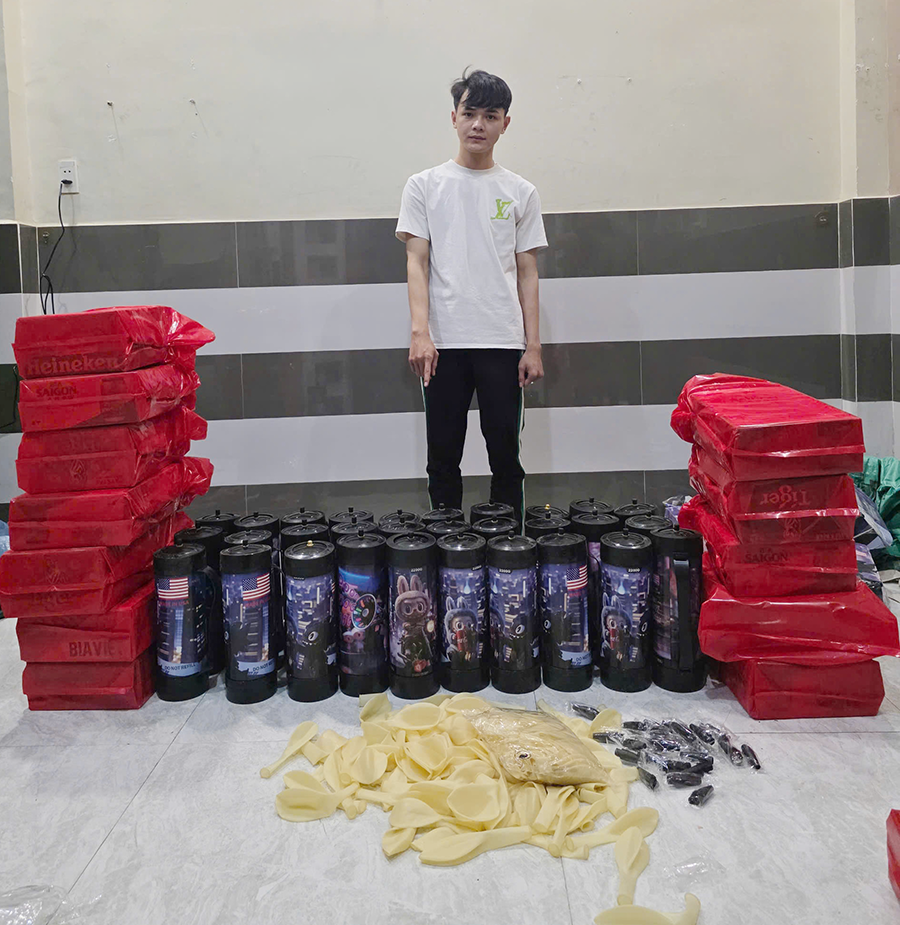 Theo điều tra ban đầu, rạng sáng ngày 21/3, các trinh sát Phòng Cảnh sát kinh tế bất ngờ kiểm tra một căn nhà trên đường Lê Văn Khương (phường Tân Thới Hiệp). Tại đây, lực lượng chức năng phát hiện 30 bình khí cười cùng lượng lớn bóng cao su và các loại van chiết rót.