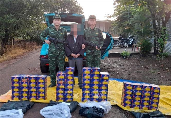 Đối tượng T.H.V đã khai nhận số tang vật trên là pháo nổ do một người (chưa rõ lai lịch) thuê vận chuyển về Phước Long với giá 40.000 đồng/hộp. Khi đang trên đường vận chuyển thì bị lực lượng Bộ đội Biên phòng bắt giữ.
