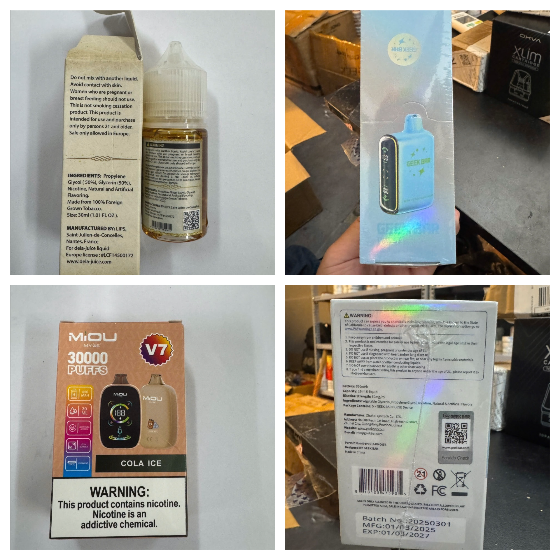 Qua kiểm tra và khám xét khẩn cấp, lực lượng chức năng thu giữ 28.657 sản phẩm gồm thuốc lá điện tử dùng một lần, máy hút thuốc lá điện tử, tinh dầu, linh kiện thay thế và túi nicotine; tất cả được đóng trong 140 thùng carton, kèm theo các thiết bị điện tử và nhiều tài liệu phục vụ hoạt động kinh doanh. Tổng giá trị hàng hóa bị phát hiện ước tính hơn 4,8 tỷ đồng.