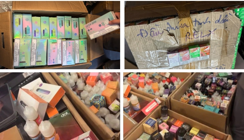 Qua kiểm tra và khám xét khẩn cấp, lực lượng chức năng thu giữ 28.657 sản phẩm gồm thuốc lá điện tử dùng một lần, máy hút thuốc lá điện tử, tinh dầu, linh kiện thay thế và túi nicotine, được đóng gói trong 140 thùng carton, cùng nhiều thiết bị điện tử, tài liệu, dữ liệu phục vụ hoạt động kinh doanh. Tổng giá trị hàng hóa vi phạm được xác định hơn 4,8 tỷ đồng.