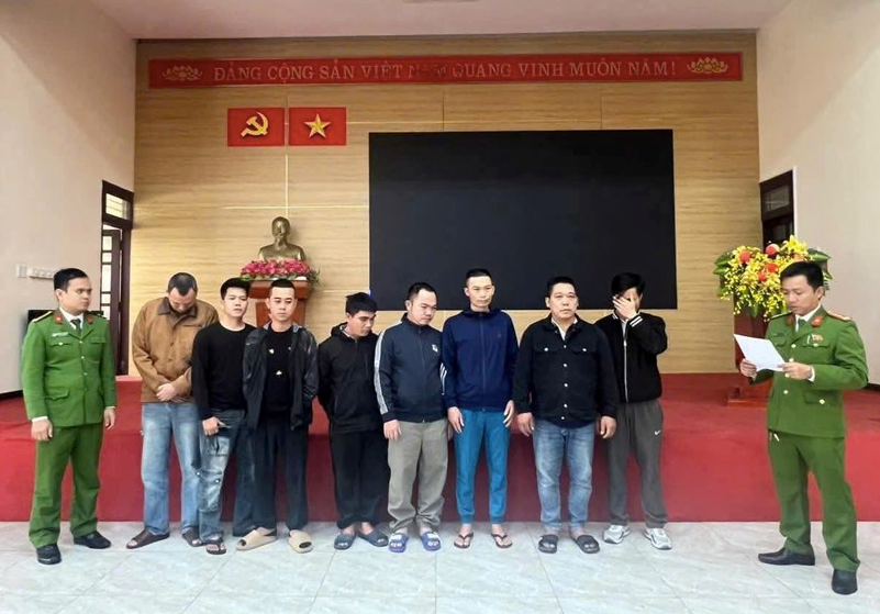 Căn cứ tài liệu, chứng cứ thu thập được, Cơ quan Cảnh sát điều tra Công an tỉnh Quảng Trị đã ra lệnh giữ người trong trường hợp khẩn cấp, đồng thời quyết định tạm giữ hình sự 8 đối tượng để điều tra về hành vi tổ chức đánh bạc và đánh bạc.