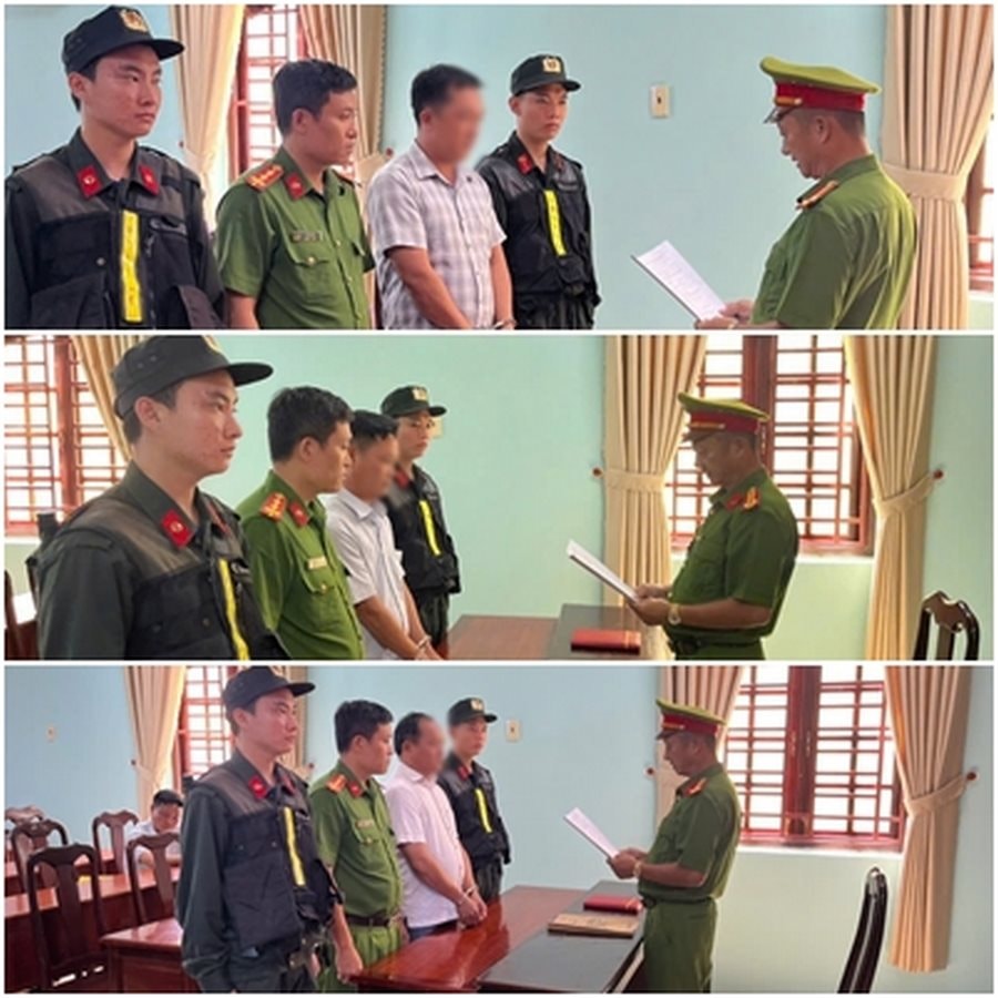 Cơ quan Cảnh sát điều tra Công an tỉnh An Giang tống đạt các quyết định khởi tố vụ án, khởi tố bị can đối với Tô Hoàng Dũ, Trường Văn Tiền, Ngô Hữu Chuẩn (từ trên xuống)