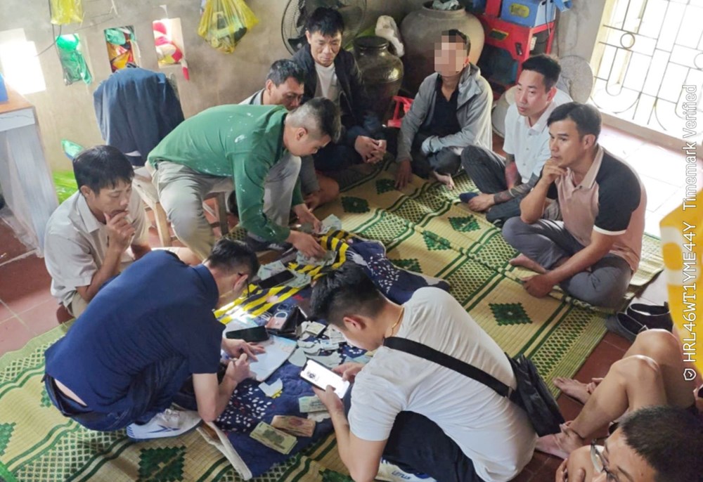 Khoảng 15h30 cùng ngày, lực lượng trinh sát đã triển khai phương án, tổ chức vây bắt quả tang sới bạc khi các đối tượng đang sát phạt nhau.