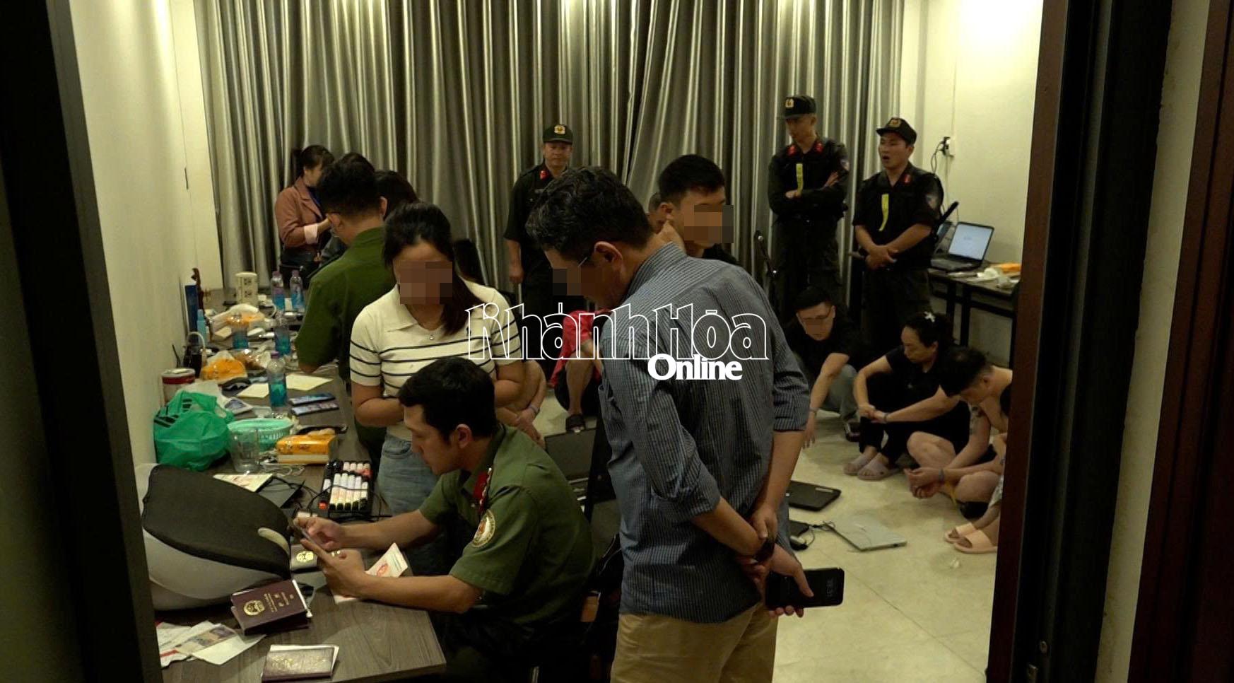 Tối 26-12, Phòng Cảnh sát hình sự Công an tỉnh Khánh Hòa chủ trì, phối hợp với các đơn vị nghiệp vụ đồng loạt kiểm tra tại 5 điểm trên địa bàn các phường: Nha Trang, Nam Nha Trang, Tây Nha Trang, bắt quả tang nhiều nhóm đối tượng người nước ngoài quốc tịch Trung Quốc đang tổ chức đánh bạc và cá cược trực tuyến quy mô lớn.