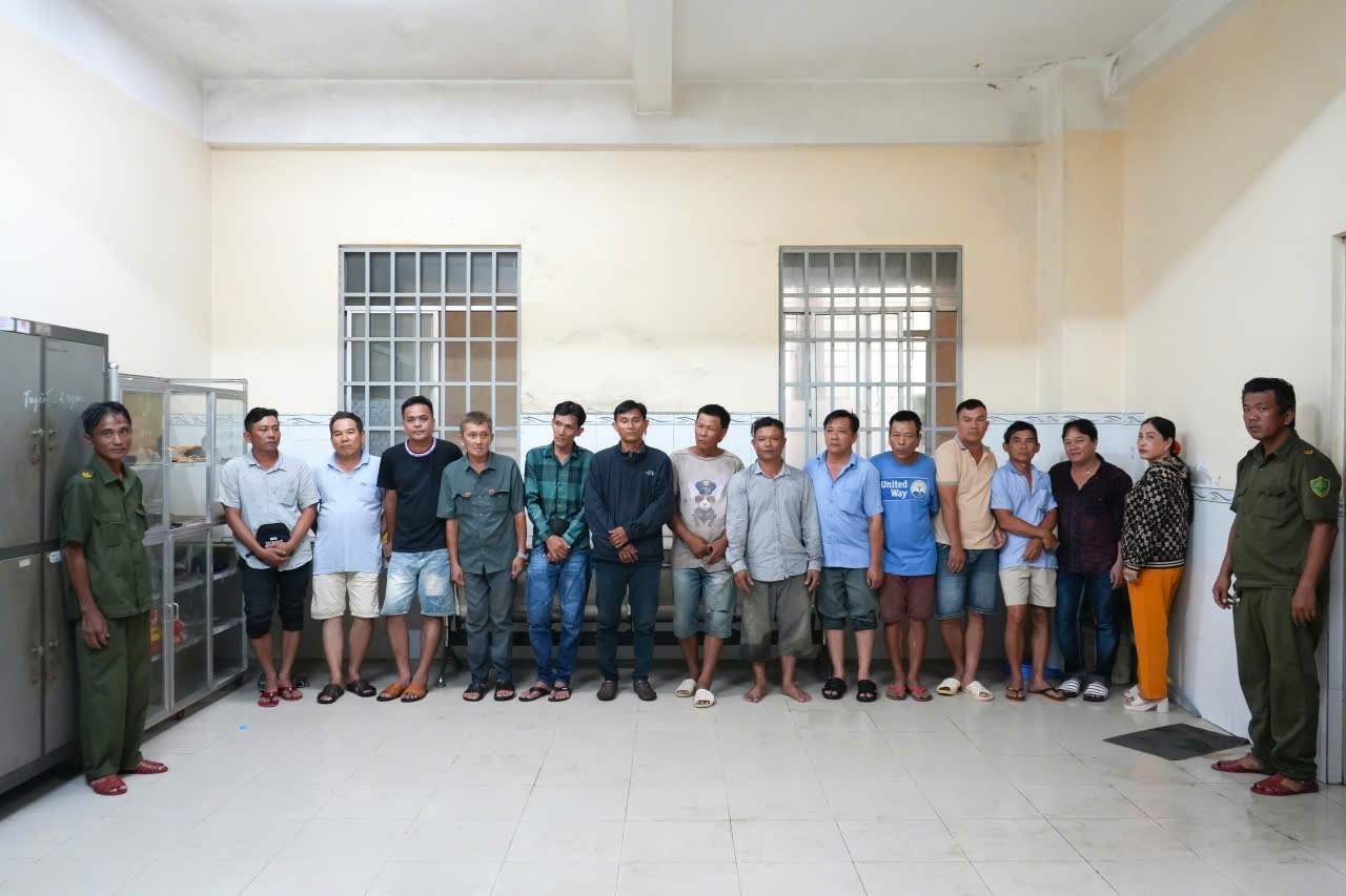 14 đối tượng tham gia đánh bạc dưới hình thức đá gà ăn thua bằng tiền qua mạng trực tuyến tại phường Cái Răng, thành phố Cần Thơ. Ảnh: CACC.