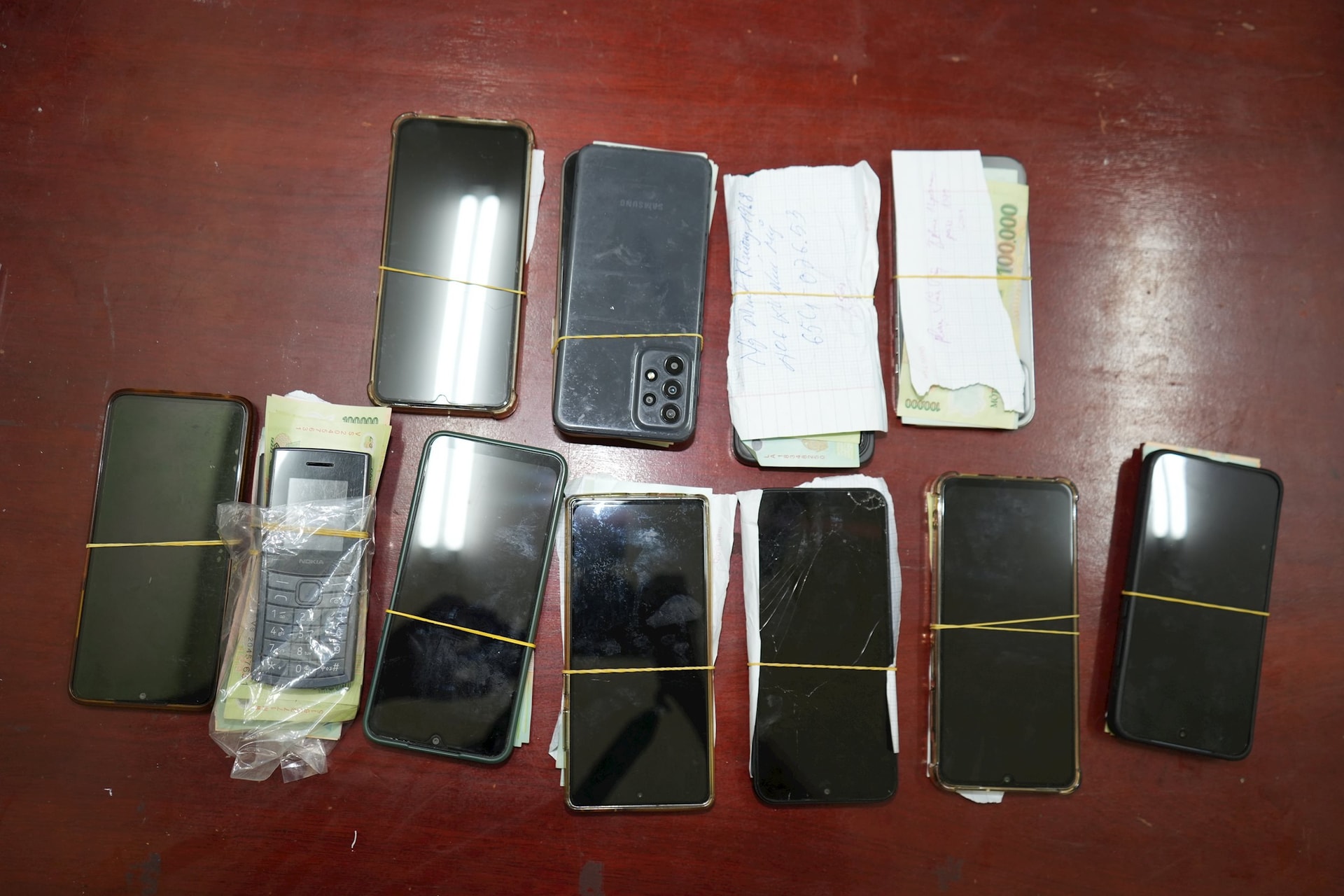 Tang vật tạm giữ gồm: 13 điện thoại di động các loại và thu giữ trong người các đối tượng 40.200.000đ.