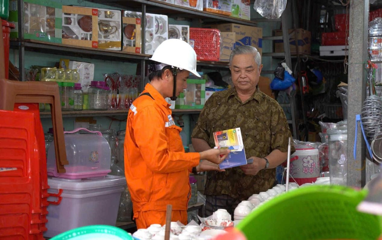 Công nhân EVNSPC đến từng hộ gia đình hướng dẫn sử dụng điện an toàn.