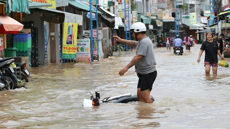 Nước ngập sâu khu vực chợ Bình Thủy, Cần Thơ.