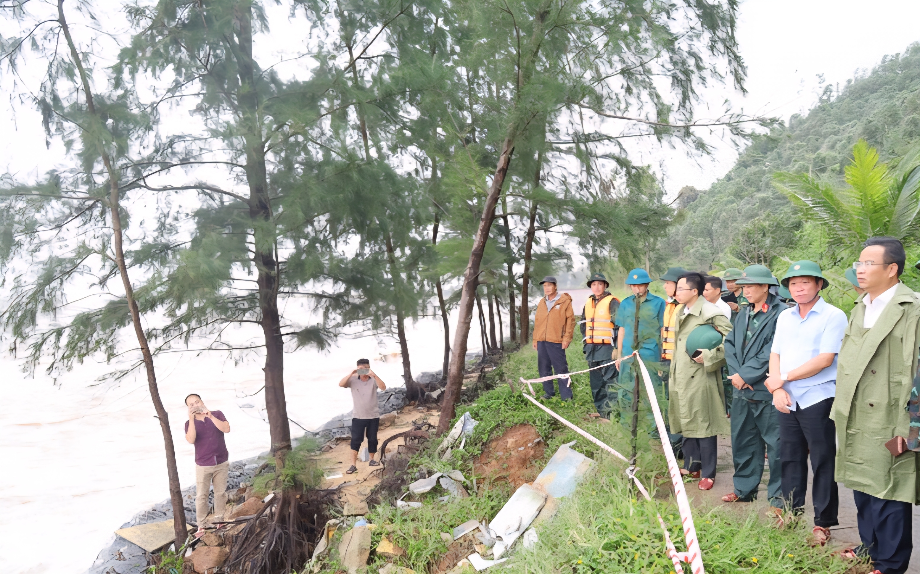 Phó Bí thư Thường trực Thành ủy Huế Phạm Đức Tiến kiểm tra tại điểm sạt lở ở xã Phú Lộc