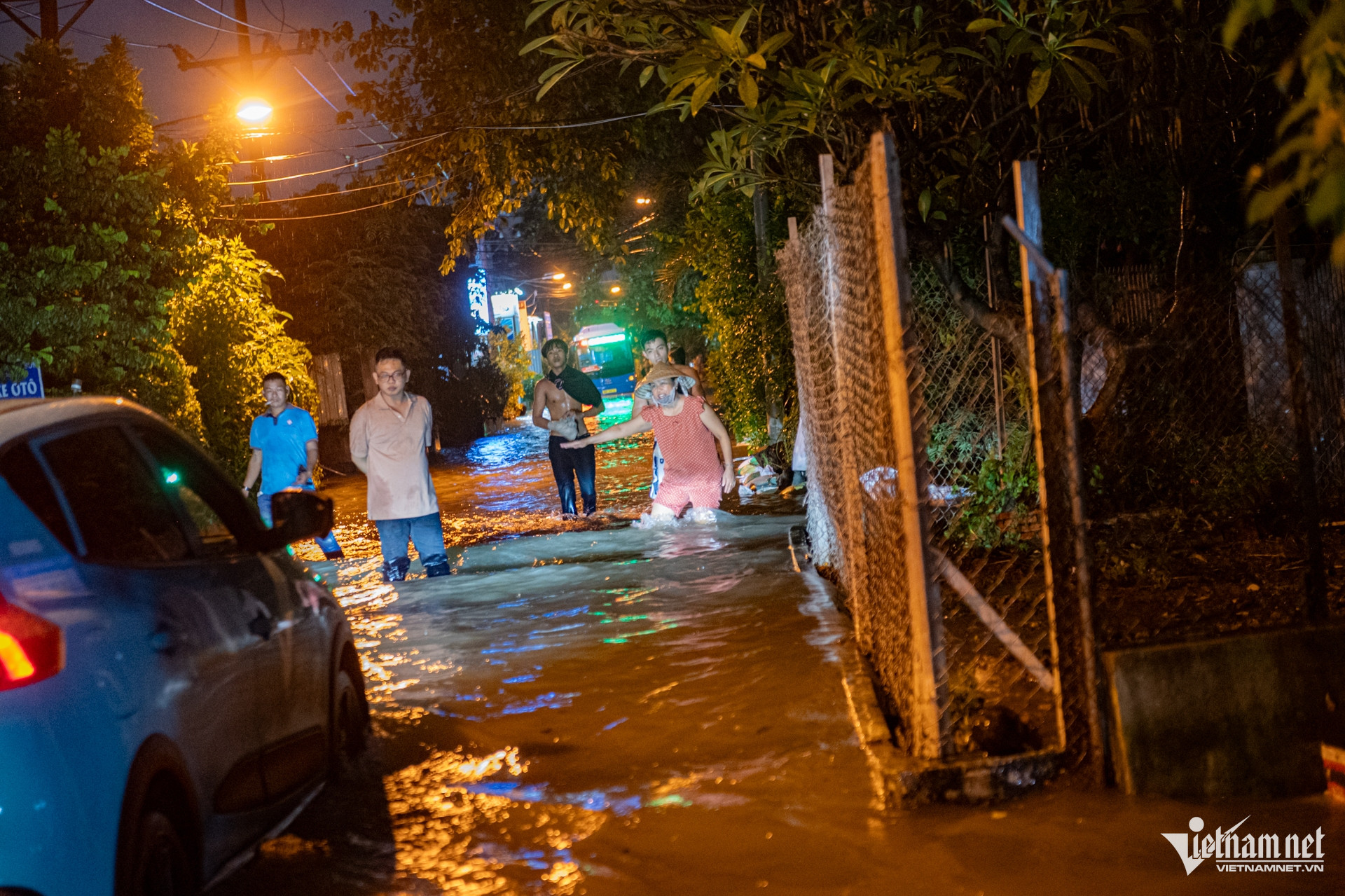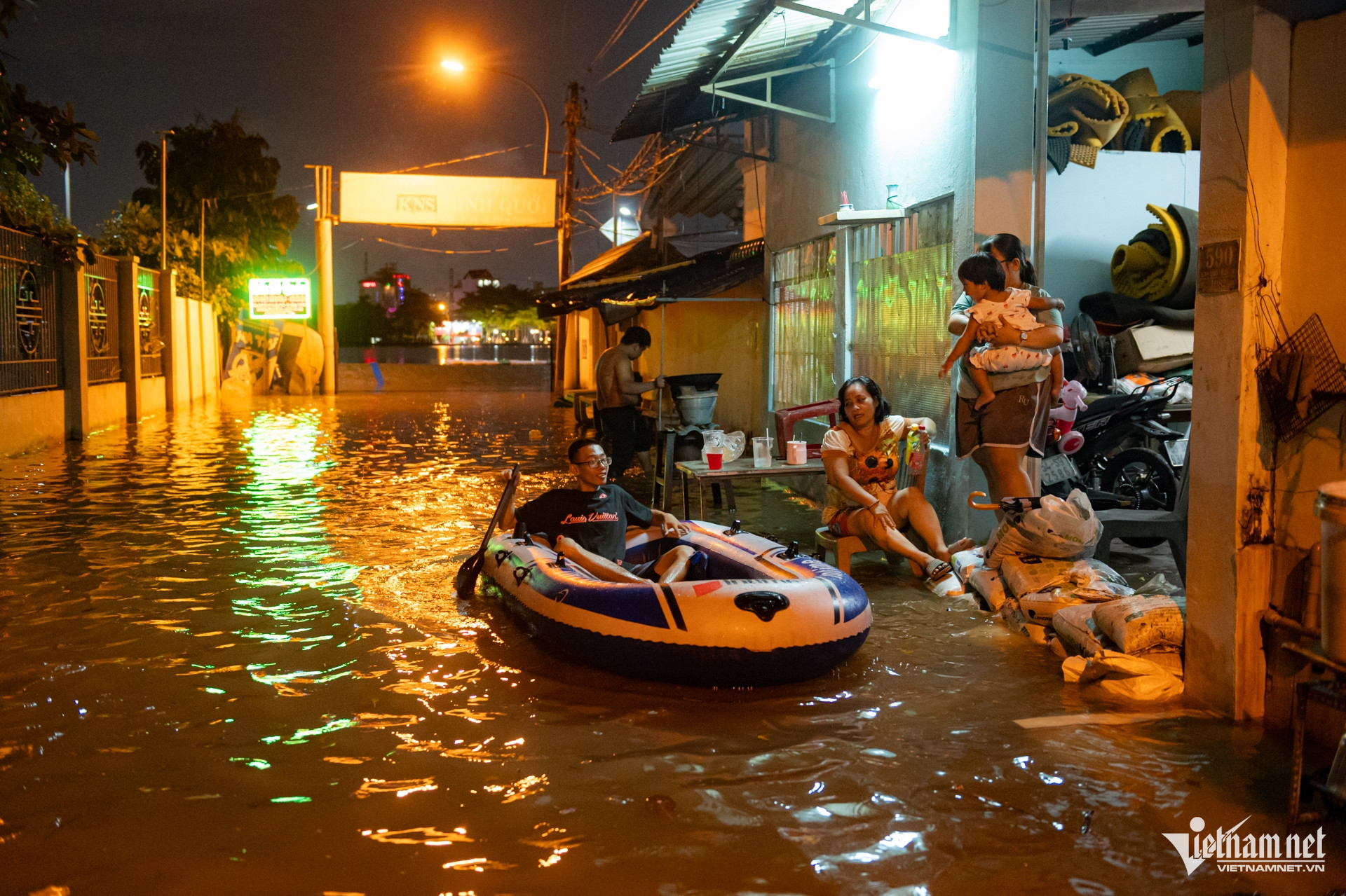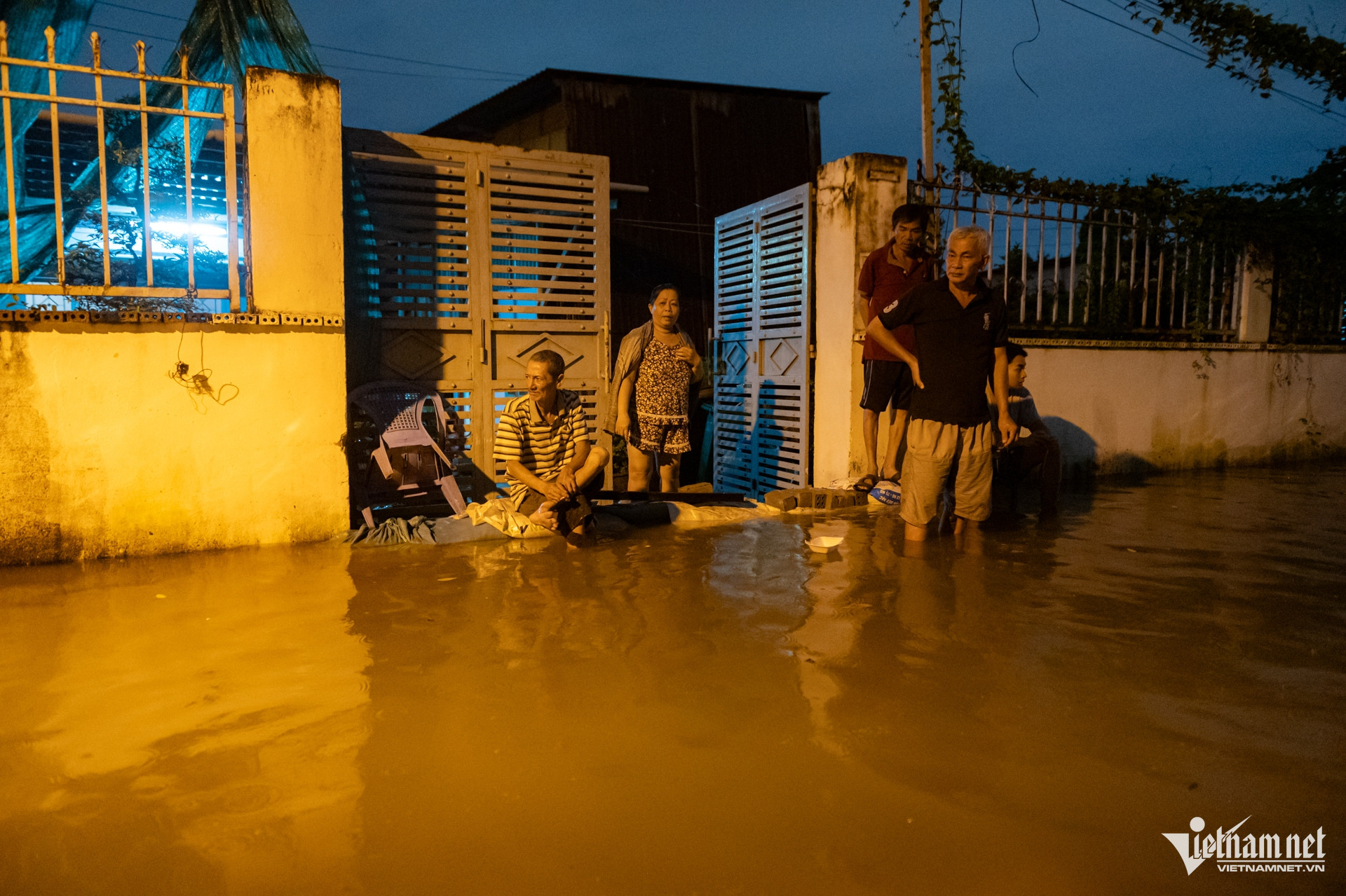 Tối muộn, nhiều người vẫn đứng trước cửa chờ nước rút. Dù đã quen với cảnh triều cường dâng, năm nay ai cũng ngao ngán vì mực nước cao bất thường, lo ngại các đợt triều tới sẽ còn phức tạp hơn.