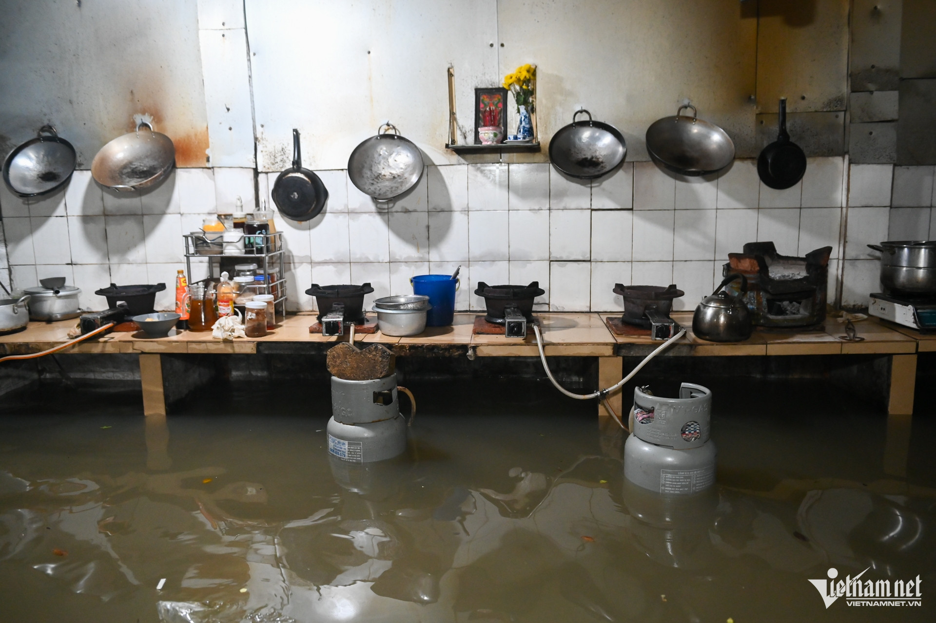 Căn bếp nhà bà Hoàng Anh nằm ở vị trí trũng nên bị ngập rất sâu, có thời điểm nước dâng cao gần 1m.