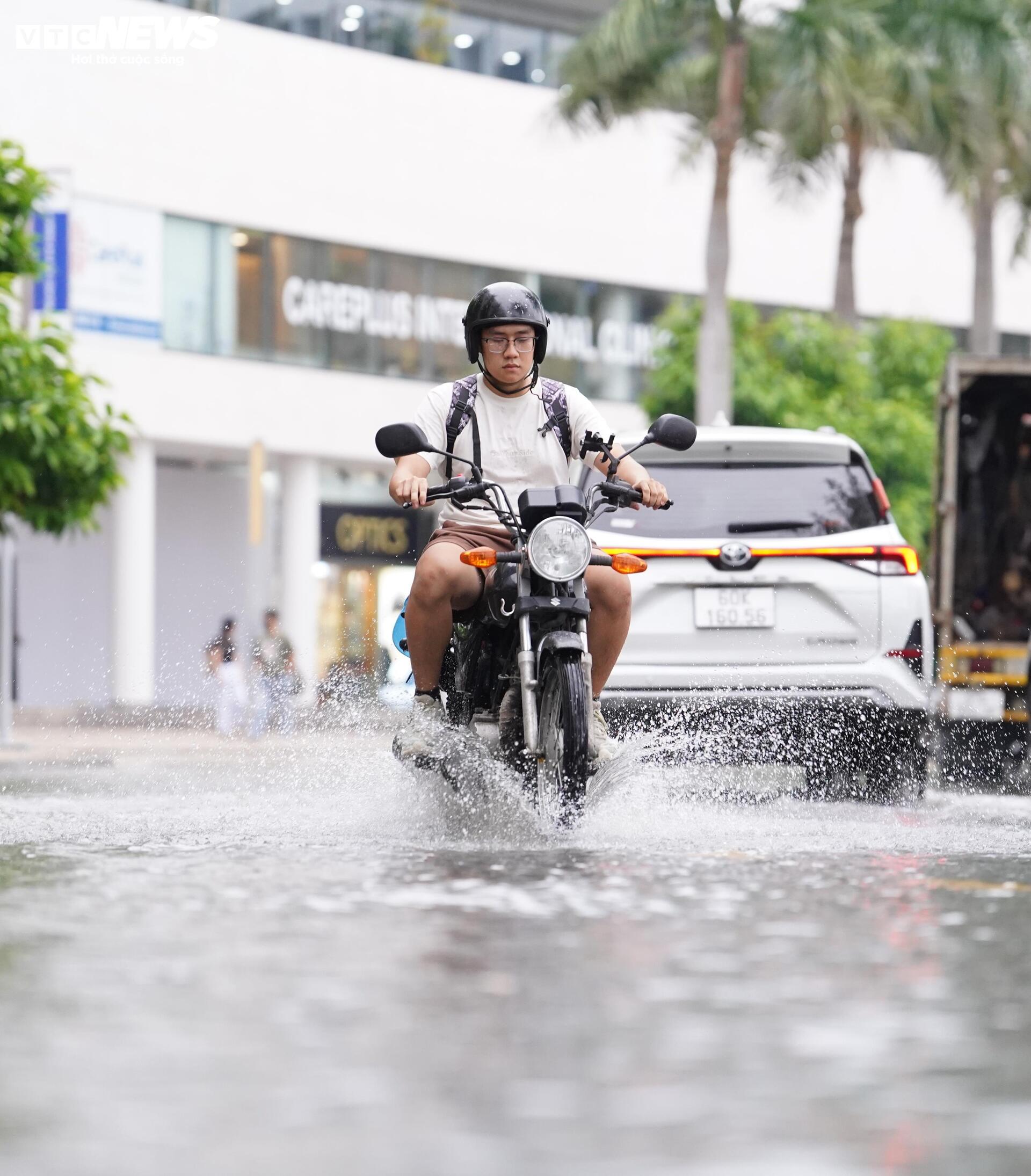 Nước dâng cao nhanh chóng nhấn chìm toàn bộ mặt đường, khiến các tài xế rất khó quan sát và di chuyển. Một số tài xế cho biết họ không thể xác định ranh giới giữa làn đường và vỉa hè do mực nước sâu gần nửa bánh xe.