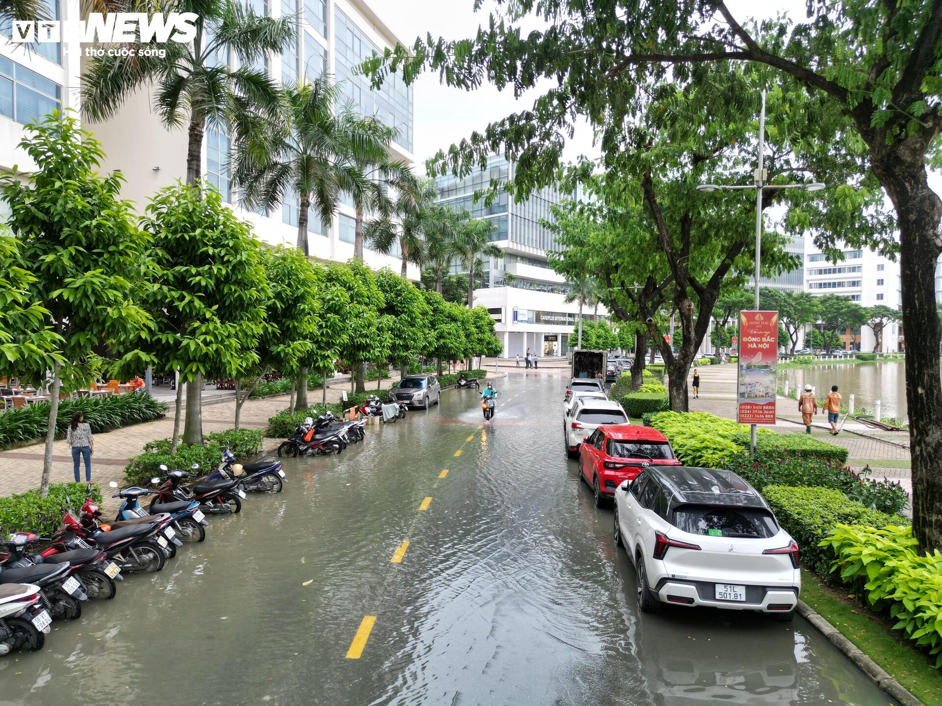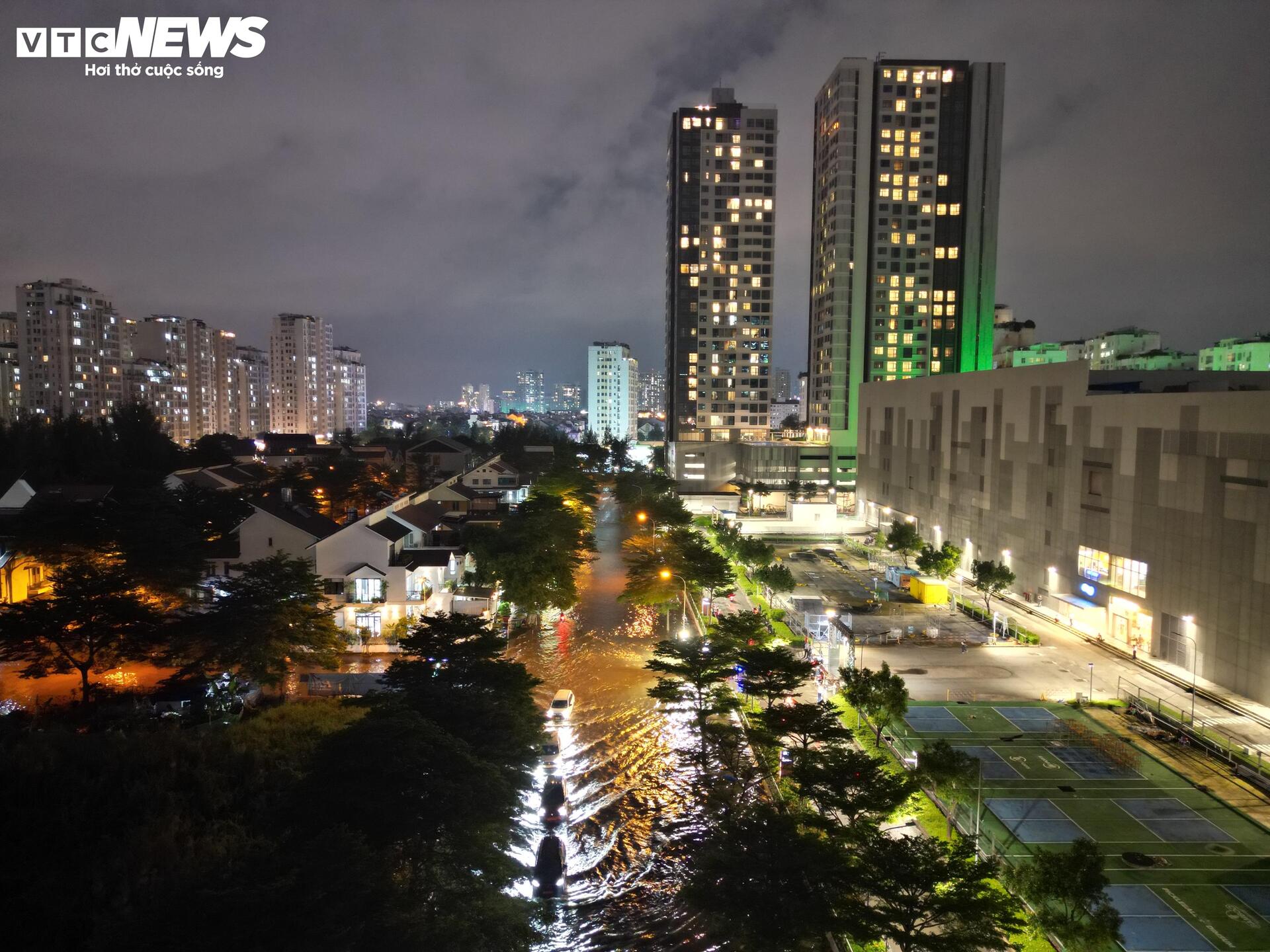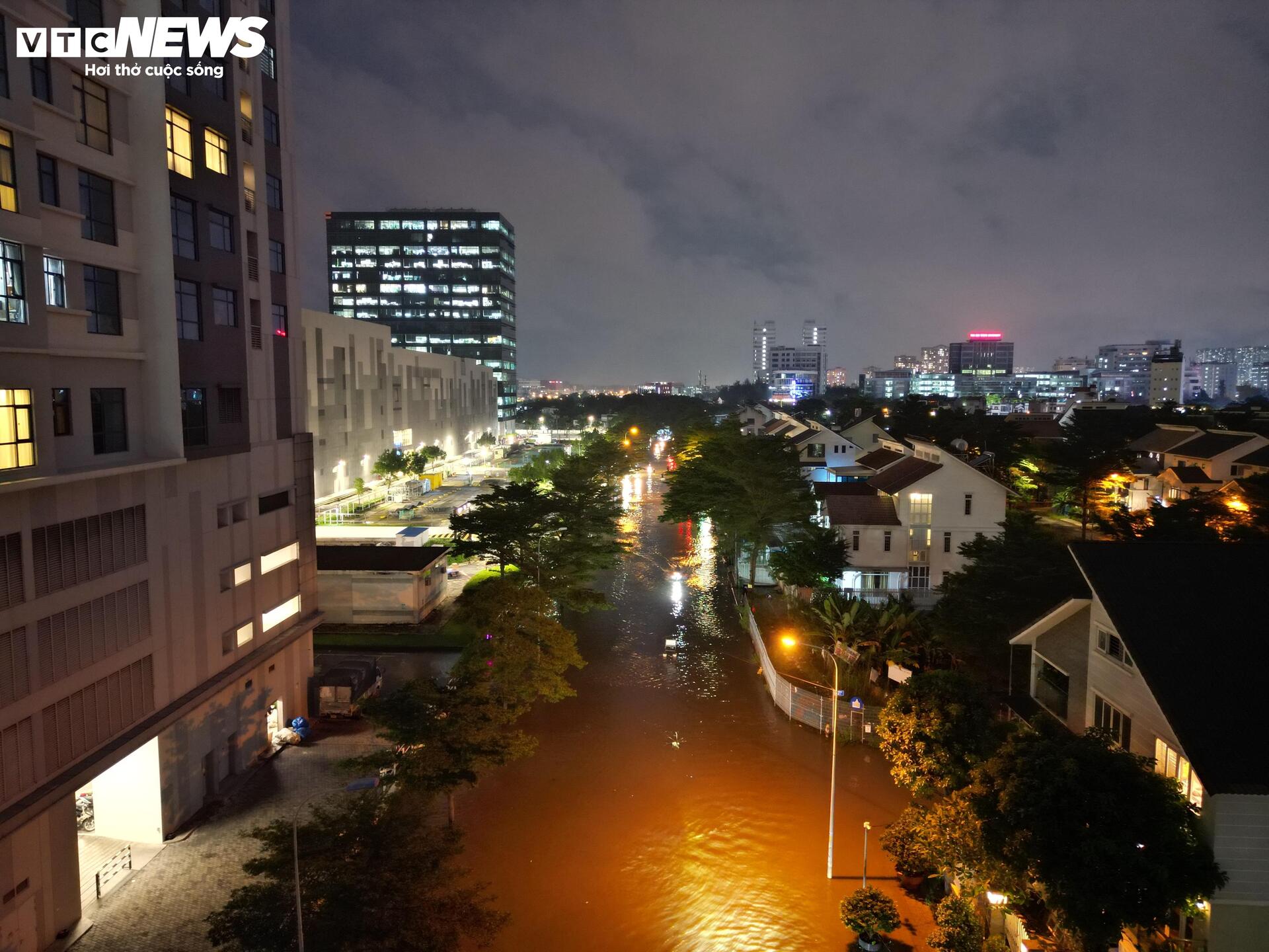 Đến 19h, tại khu vực trung tâm thương mại SC VivoCity (đường Nguyễn Văn Linh), nước vẫn chưa rút, mặt đường ngập lênh láng kéo dài hàng trăm mét.