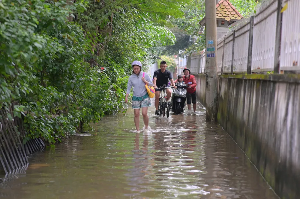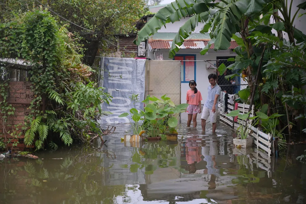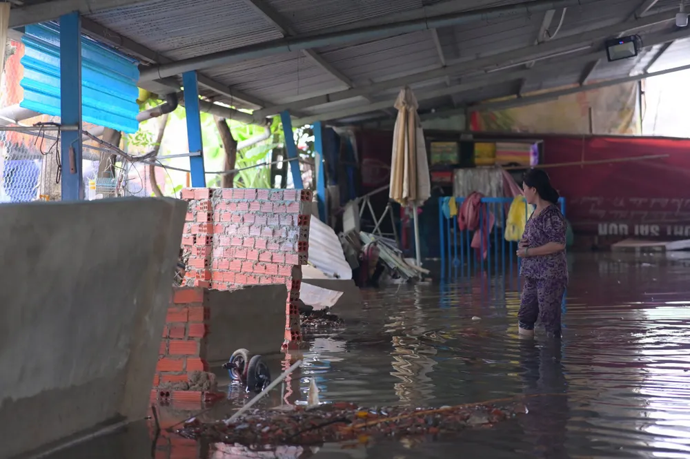 Cuối đường Bình Quới, nước từ sông Sài Gòn tràn vào nhanh, có nơi ngập sâu gần 2 mét. Người dân phải dùng bao cát, ván gỗ chắn trước cửa nhà để hạn chế nước tràn; nhiều hộ phải di chuyển tài sản, kê cao đồ đạc để tránh hư hỏng.