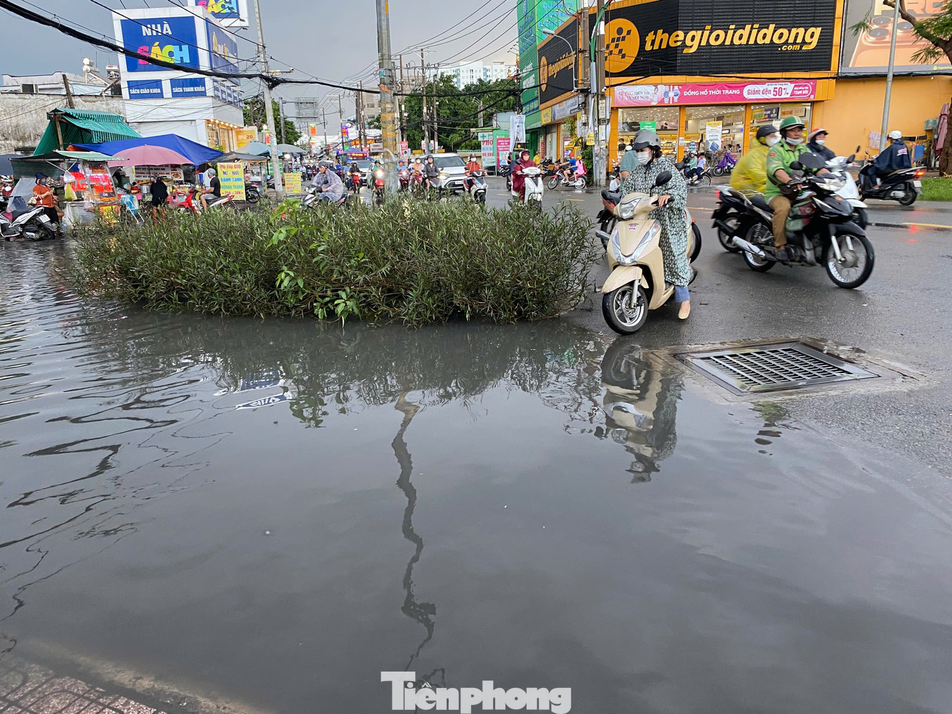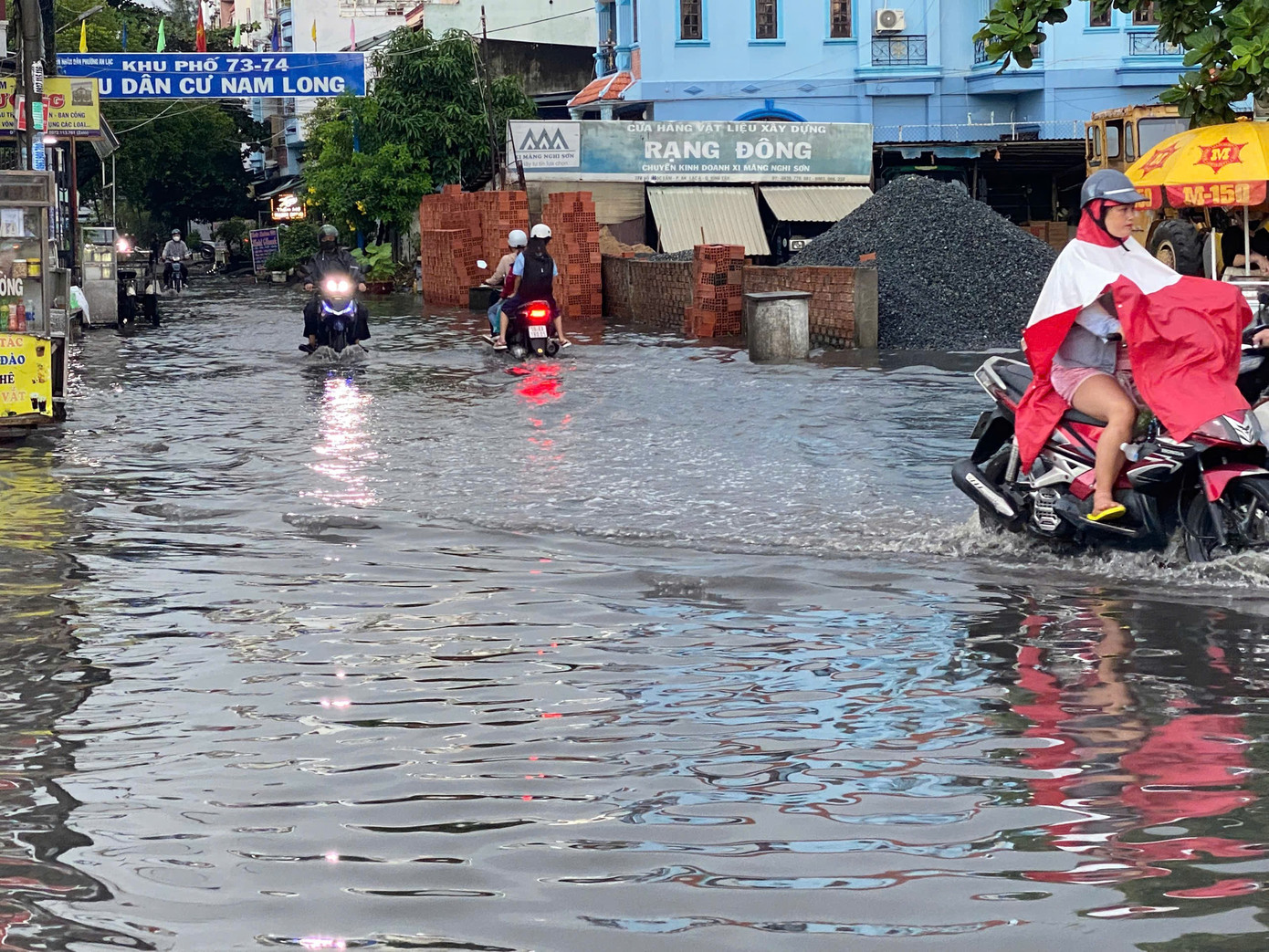 Tại đường số 7 (phường An Lạc), nơi dẫn vào khu dân cư Nam Long, nước ngập từ 20–30 cm, có đoạn ngập sâu hơn nửa bánh xe khiến xe máy di chuyển chậm. Một số hộ dân cho biết khu vực này thuộc vùng trũng thấp, khi mưa lớn kết hợp với nước ở kênh rạch dâng cao sẽ bị ngập nặng.