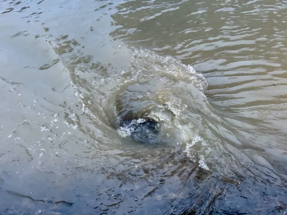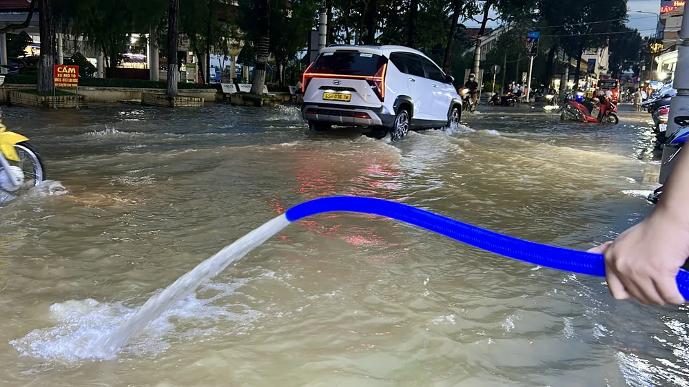 Nước từ sông tràn lên đường phố cuồn cuộn