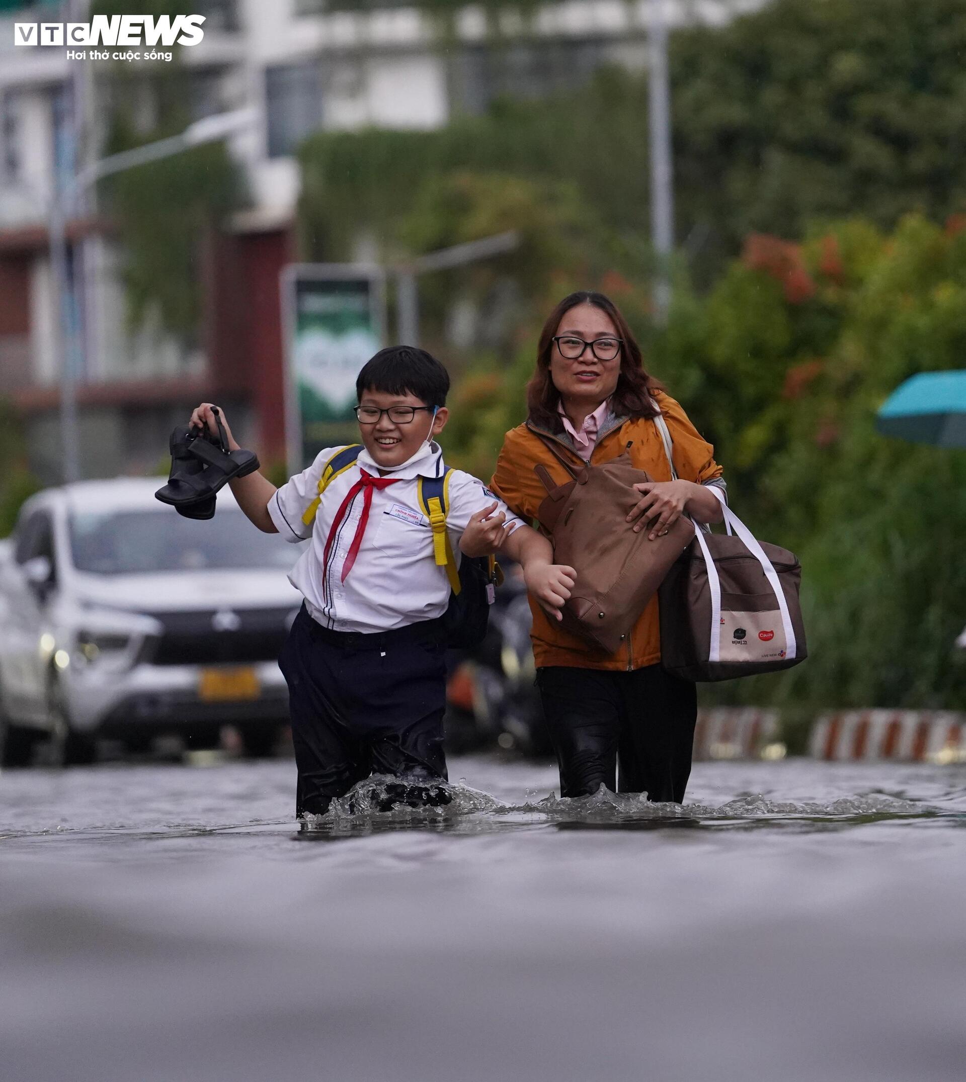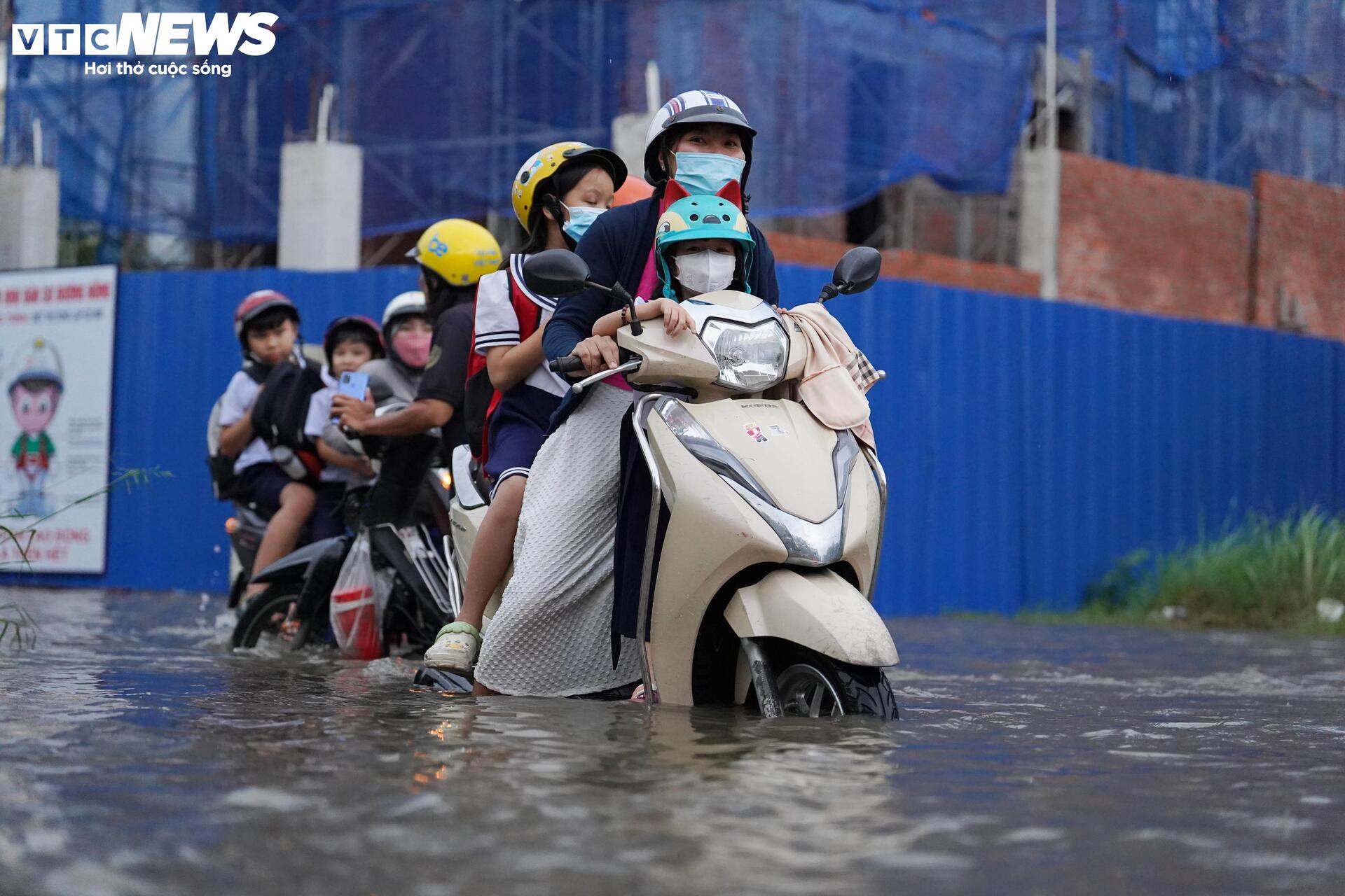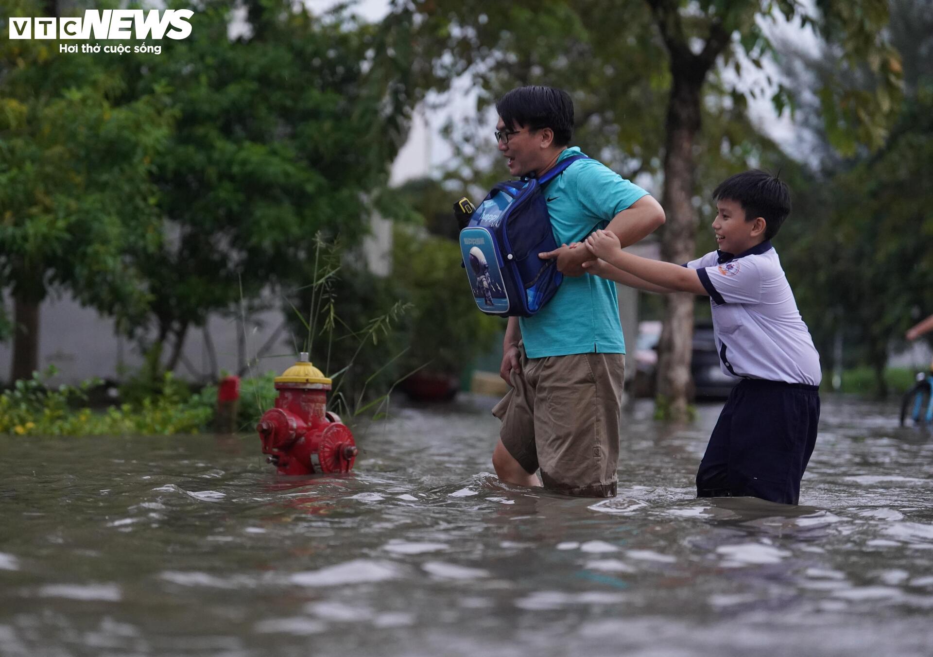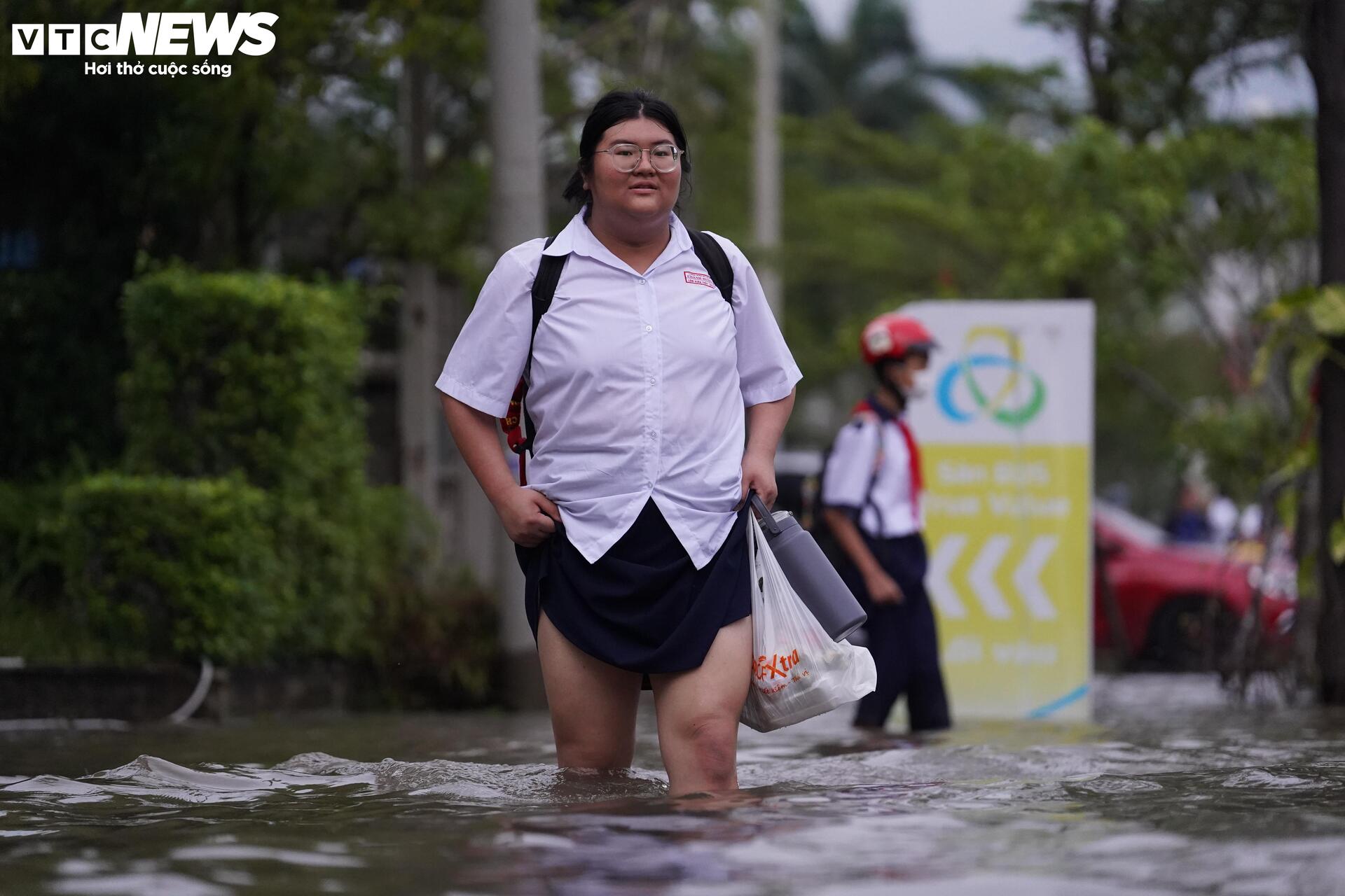 Chị Nguyễn Thanh Thy (ngụ xã Nhà Bè) cho biết: “Lần đầu tiên tôi thấy tuyến đường này ngập sâu như vậy. Tôi chờ hơn 2 tiếng mà nước vẫn chưa rút.” Còn anh Hoàng Minh Tình (ngụ xã Bình Hưng) chia sẻ, nhà chỉ cách trường chưa đầy 500 m nhưng hai cha con phải ngồi chờ nước rút mới dám về vì đường ngập quá sâu.