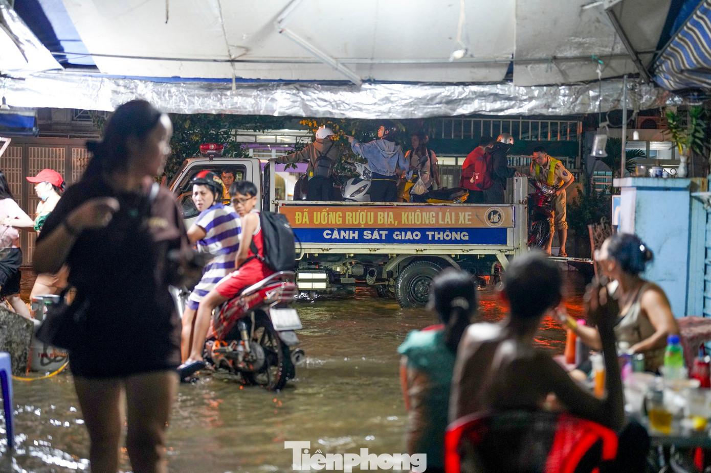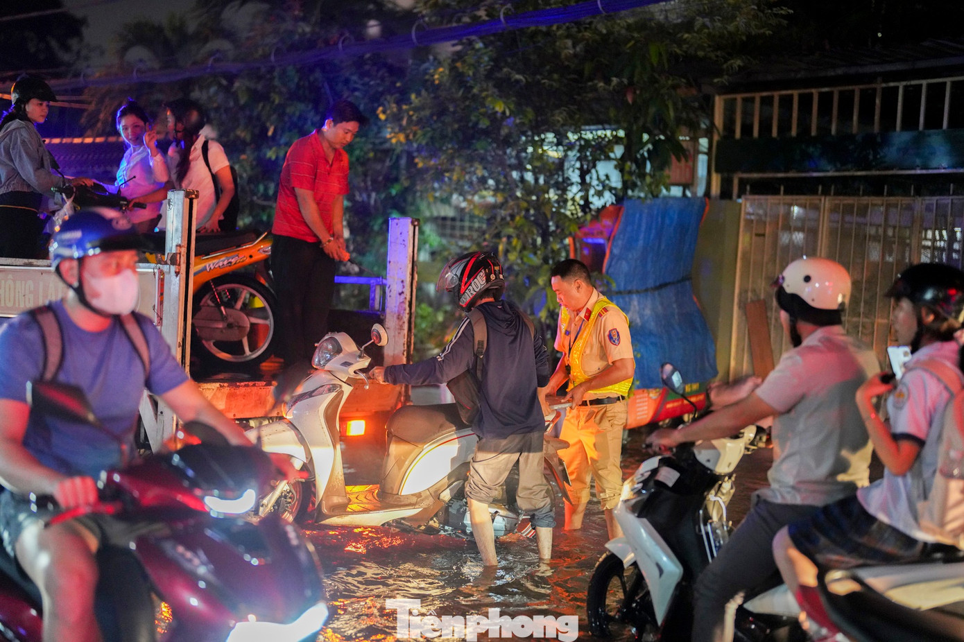 Trước diễn biến trên, đội CSGT Hàng Xanh đã bố trí lực lượng 24/24 tại những điểm ngập sâu, khu vực dễ ùn tắc.