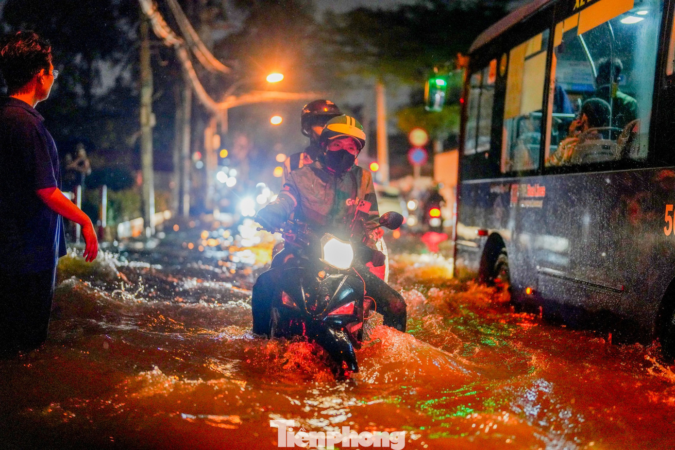 Tối 6/11, triều cường tại TPHCM đạt đỉnh, khiến nhiều tuyến đường như Trần Xuân Soạn, Huỳnh Tấn Phát, Phạm Hữu Lầu, Lê Văn Lương… bị ngập nặng. Nước dâng nhanh, phương tiện di chuyển khó khăn, hàng loạt xe máy chết máy giữa dòng, người dân phải lội bì bõm trong đêm. Theo Đài Khí tượng Thủy văn Nam Bộ, mực nước có thể chạm ngưỡng 1,9 m - mức cao nhất từng ghi nhận, cộng thêm mưa lớn khiến tình hình ngập kéo dài và phức tạp hơn.