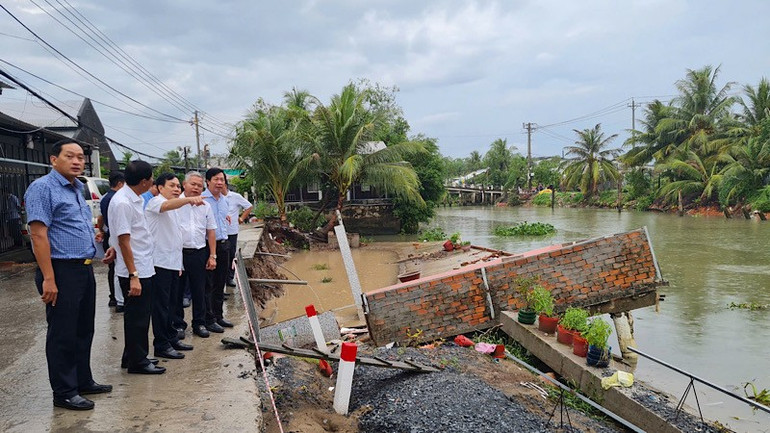 Sạt lở bờ sông Thơm Rơm, thành phố Cần Thơ gây thiệt hại nhà dân, đường giao thông.