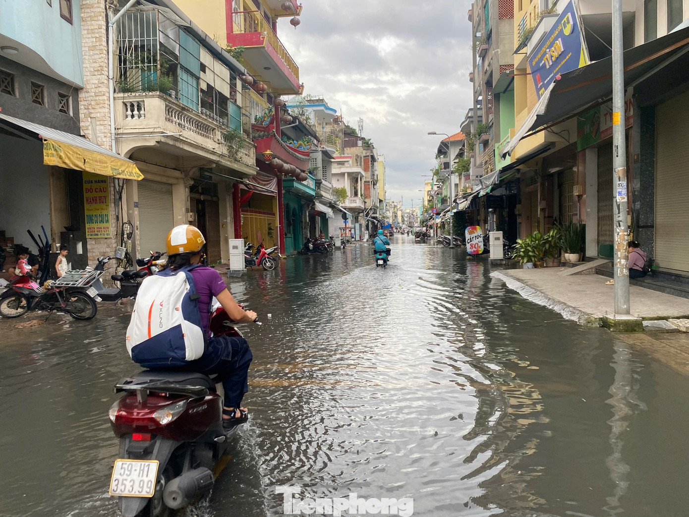 Nước dâng cao gây ngập một đoạn đường Gò Công (phường Chợ Lớn).