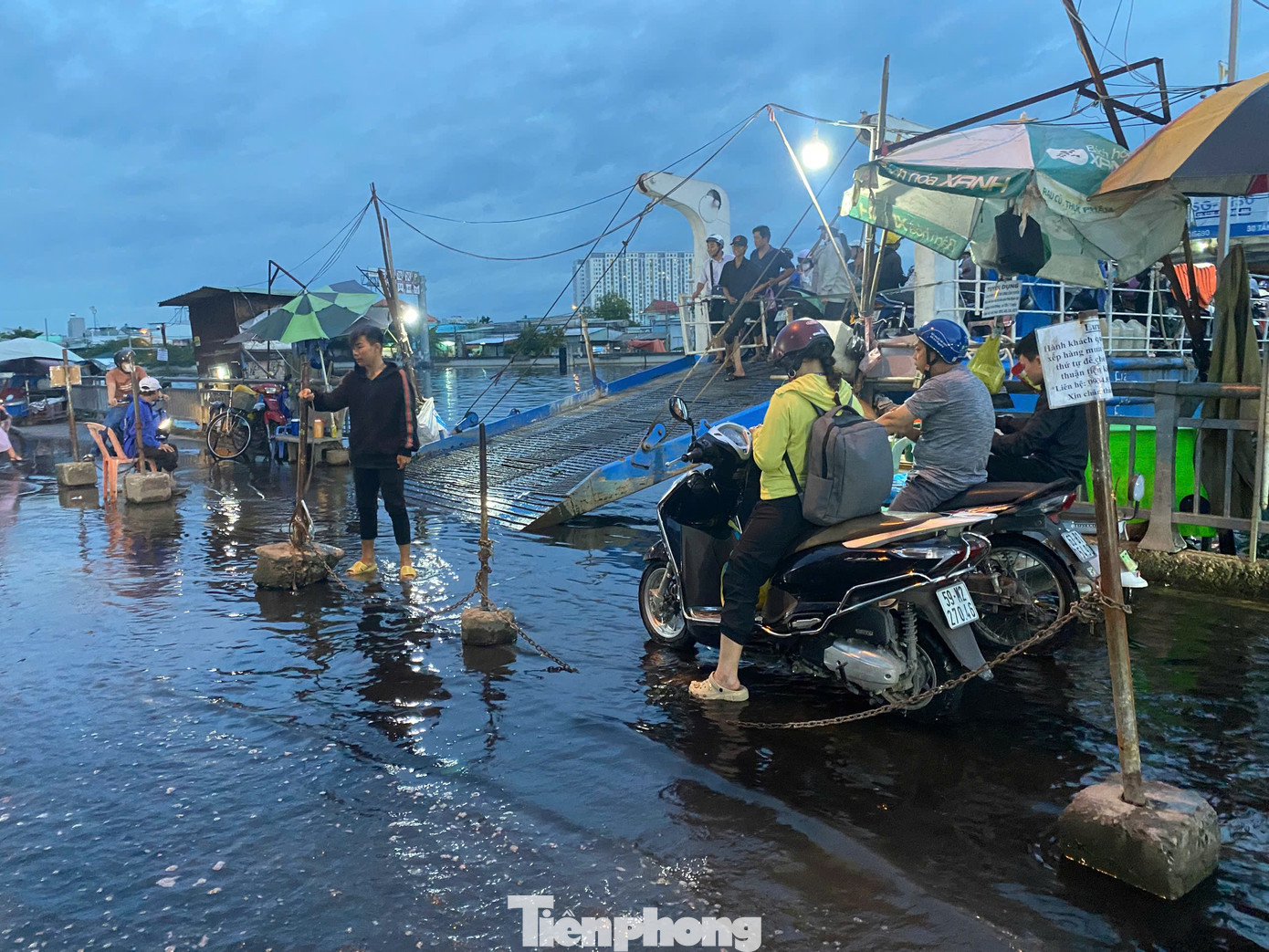 Người dân TPHCM chật vật di chuyển trong buổi chiều 20/11 khi nước triều lên cao.