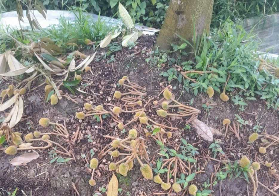 Xót xa bỏ hết những trái sầu riêng non vừa đậu với hy vọng cứu cây khỏi chết, anh Giang buồn bã: “Năm rồi, đê cũ không bị tràn, năm nay nước quá cao, dù đã đắp đê lên khoảng 3 tấc nhưng vẫn ngập sâu, chỉ biết bơm cầm cự thôi chứ không ngăn nổi nước tràn đê vào. Mỗi ngày tốn cả trăm nghìn tiền dầu để bơm nước, chưa kể tiền thuê be bờ, gia cố bờ bao. Từ con nước Rằm tháng 7 đến nay, hầu như ngày nào trong đợt triều cũng phải bơm. Sầu riêng đang giai đoạn làm trái đã to bằng quả trứng gà vẫn phải bỏ để mong cứu cây”.
