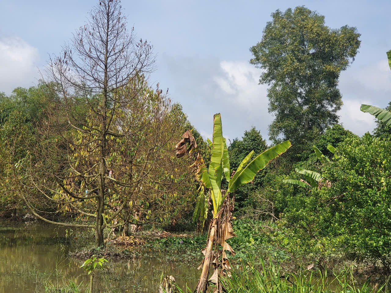 Nước ngập vườn.