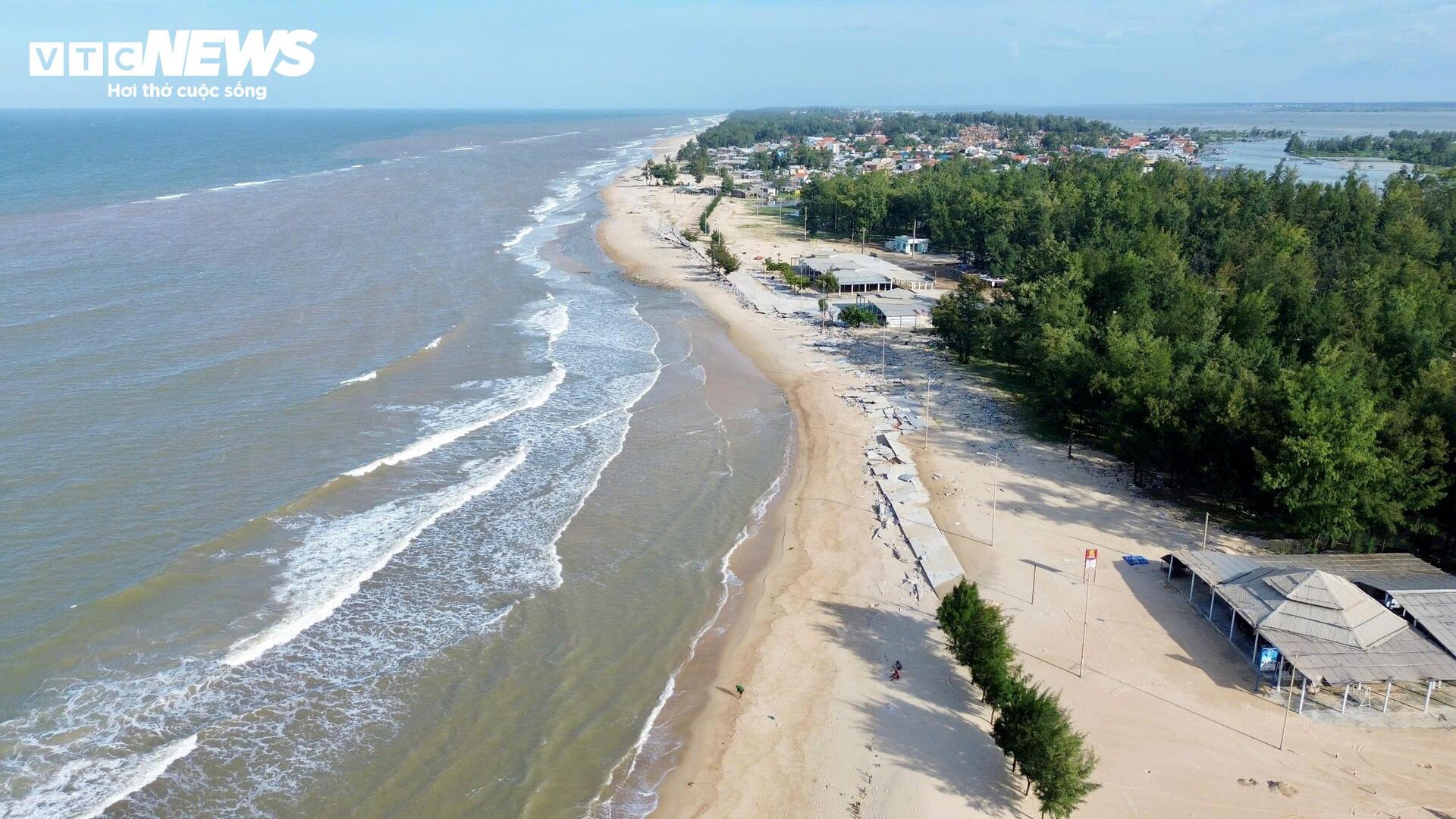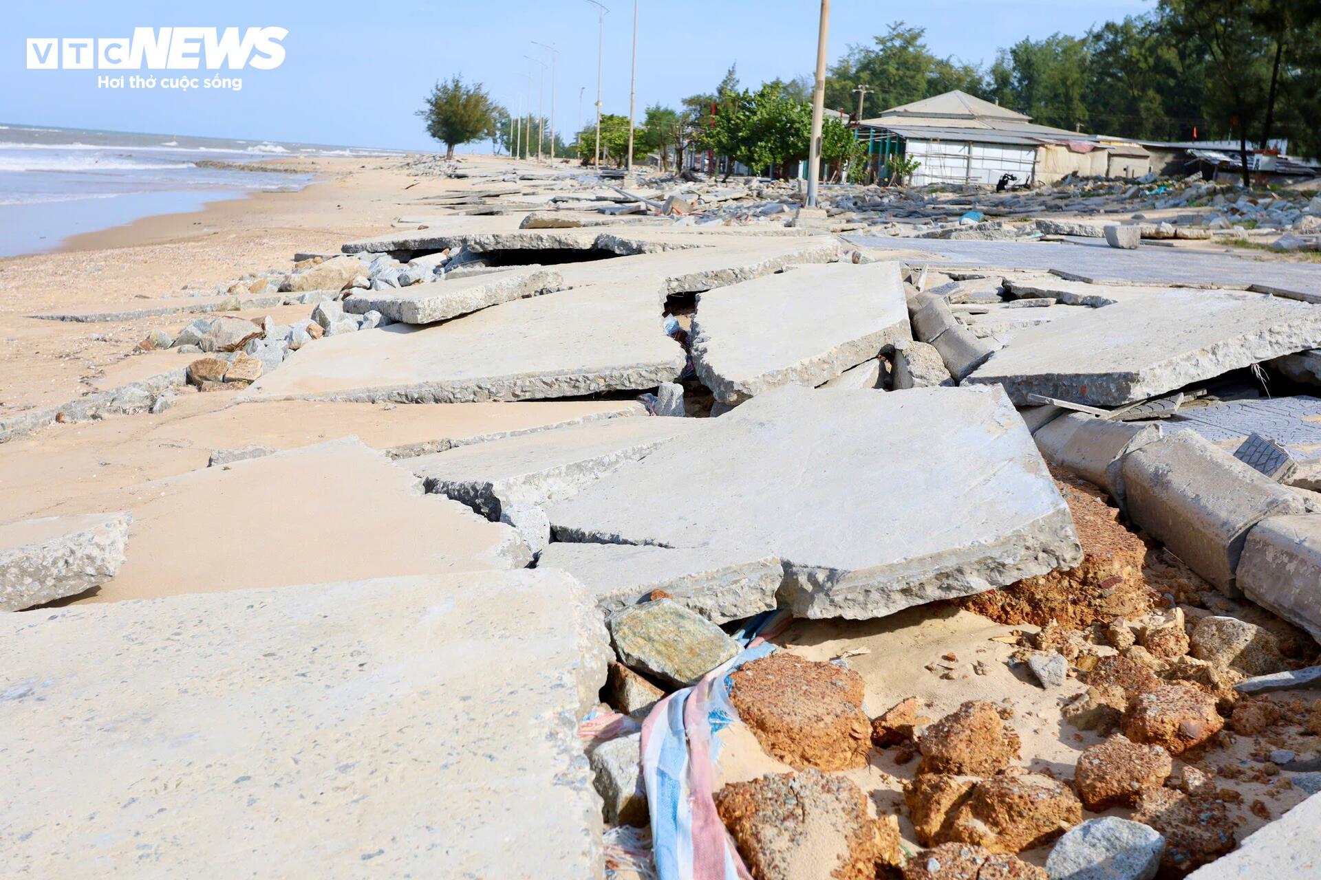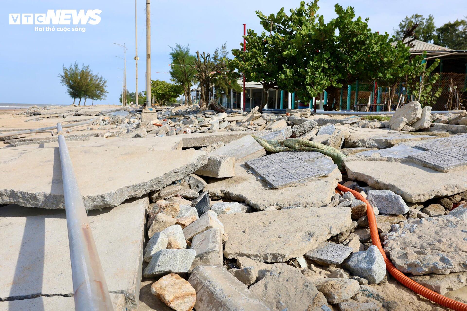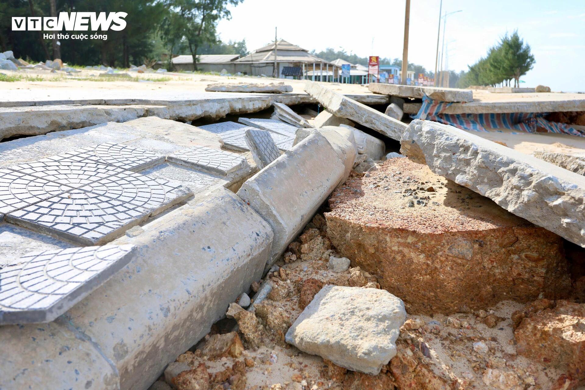 Sóng biển cuốn trôi bờ đá giữ cát, ăn sâu vào đất liền, kéo theo sự sụp đổ của những tấm bê tông lát đường và vỉa hè. Nhiều vị trí đường dạo bộ bị khoét sâu, tạo thành hầm hố nguy hiểm.