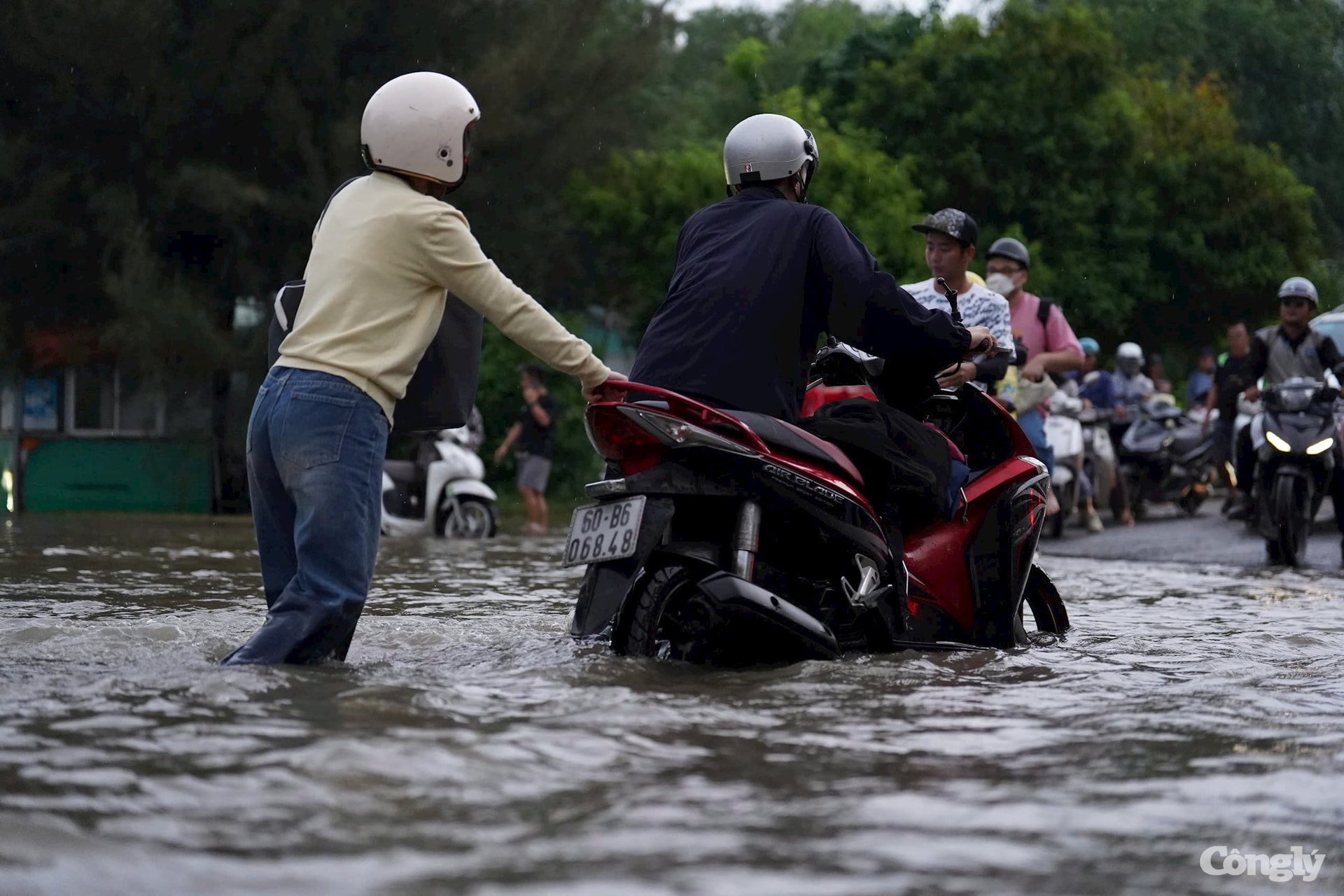 Lực lượng CSGT được bố trí ứng trực tại chốt, sẵn sàng hướng dẫn, phân luồng giao thông, hỗ trợ người dân di chuyển qua đoạn ngập; đồng thời cứu hộ phương tiện bị chết máy hoặc mắc kẹt để tránh nguy hiểm.