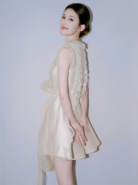 Trong loạt ảnh lần này, Triệu Lộ Tư lựa chọn thiết kế váy sát nách, phom dáng đơn giản nhưng được nhấn nhá bằng chất liệu mềm mại và các chi tiết ren tinh tế. Tông màu sáng giúp tôn lên làn da trắng cùng vẻ ngoài trẻ trung của nữ diễn viên.