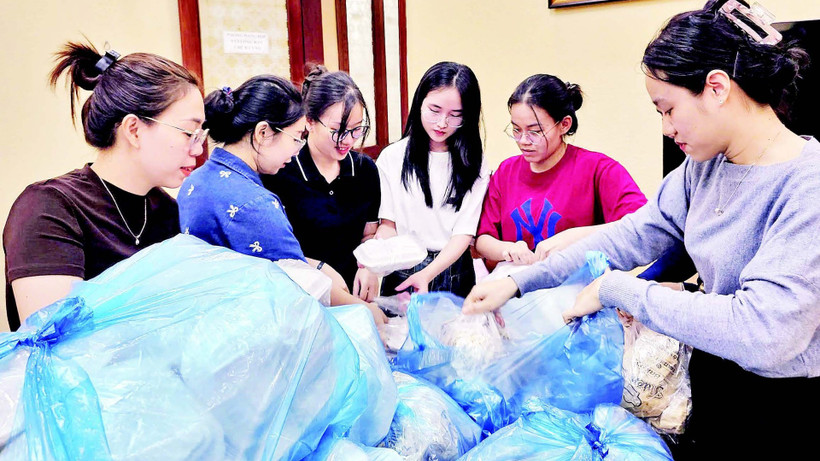 Ở các khu vực công cộng, trường học, nhà cộng đồng, người dân cùng nhau gói, nấu hàng nghìn bánh chưng, bánh tét, xôi nếp và huy động, quyên góp hàng trăm tấn lương thực, thực phẩm, nhu yếu phẩm, đồng thời tổ chức các đoàn xe cứu trợ chở hàng hóa chia thành nhiều hướng tiến về vùng lũ, nơi đồng bào đang ngóng đợi.