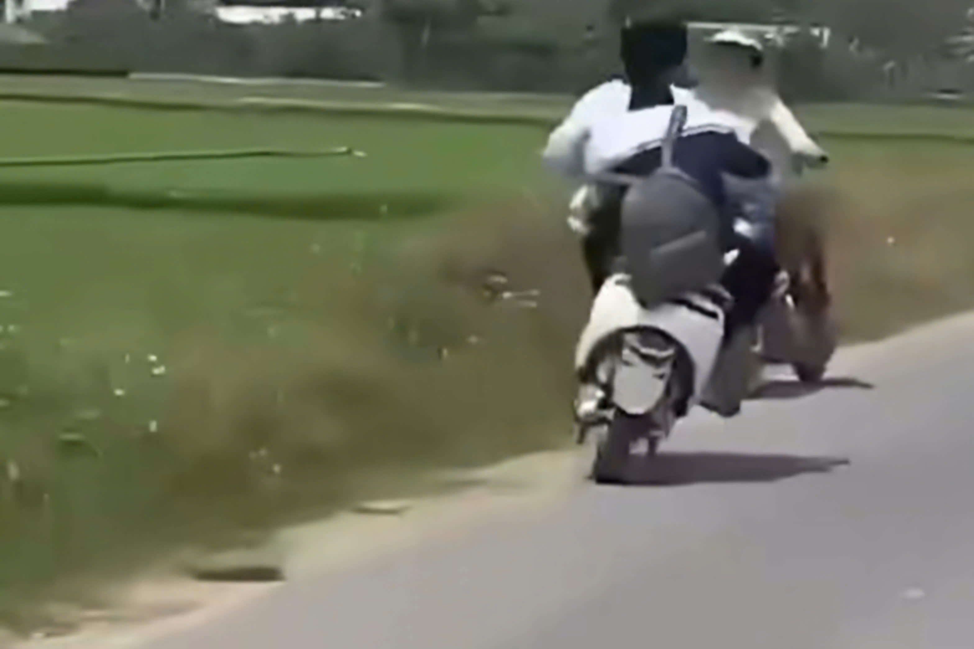 Dù người phụ nữ phía trước đã chủ động dừng xe vào ven đường để tránh, hai thiếu niên vẫn cố tình tạt đầu rồi trượt ngã và va chạm. Vụ việc khiến nhiều người bức xúc, lo ngại về tình trạng vi phạm giao thông trong lứa tuổi học sinh.