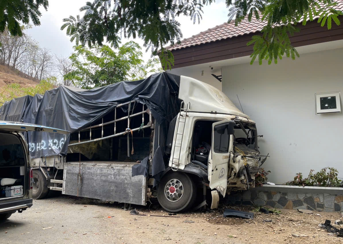 Chiếc xe tải rơi xuống núi trúng văn phòng Công ty mỏ đá Tà Zôn mới dừng lại.