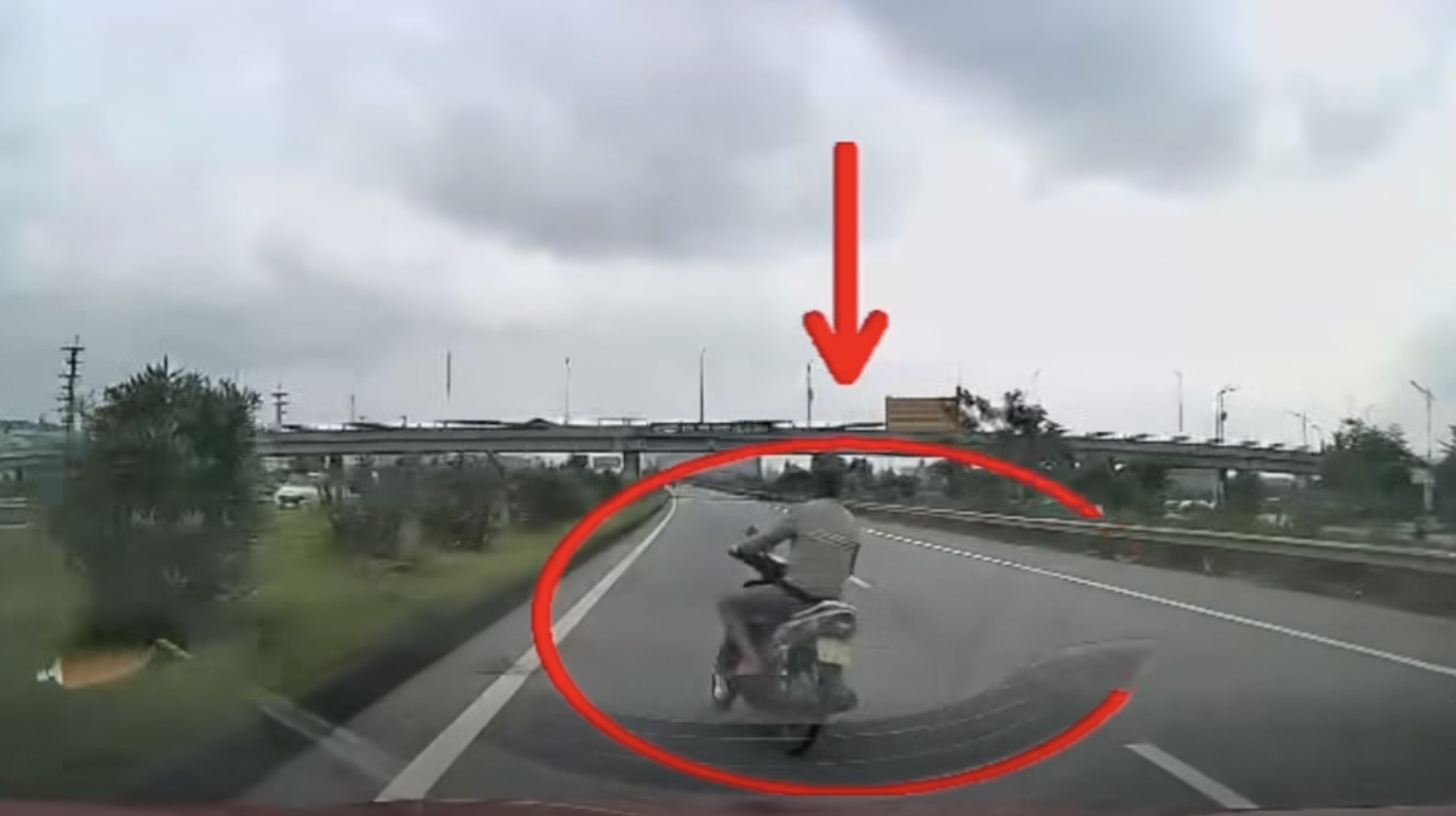 Khoảnh khắc đối tượng đi xe máy "diễn xiếc" trên cao tốc Hà Nội - Bắc Giang.