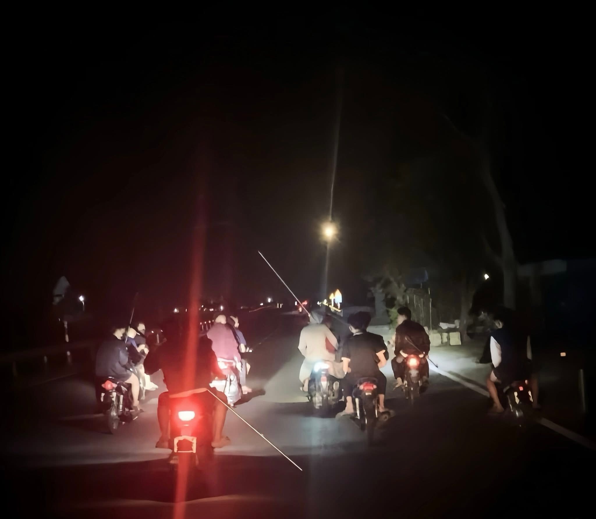 Đến đêm 18/4, nhóm thanh thiếu niên này rủ nhau đi trên 15 xe máy mang theo hung khí như dao, kiếm, tuýp sắt… lạng lách, đánh võng, khiêu khích người đi đường và tìm các nhóm thanh niên khác để gây gổ đánh nhau.