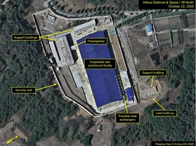 Một địa điểm nghi là cơ sở làm giàu uranium ở phía đông bắc Phòng thí nghiệm hóa phóng xạ Yongbyon cũng ghi nhận hoạt động mạnh từ đầu năm. Các nhà phân tích xác định một tòa nhà hai tầng kích thước khoảng 120 m x 47 m, có thiết kế và các đặc điểm an ninh tương đồng với cơ sở làm giàu được nghi ngờ ở Kangson gần Bình Nhưỡng. Kể từ tháng 9, sáu bộ trao đổi nhiệt - thiết bị quan trọng để làm mát máy ly tâm trong quá trình làm giàu uranium đã được lắp đặt dọc tường phía đông nam của tòa nhà này.