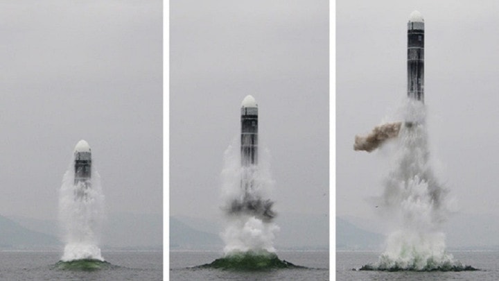 Triều Tiên thử nghiệm tên lửa đạn đạo phóng từ tàu ngầm Pukkuksong-3. Ảnh Military Watch