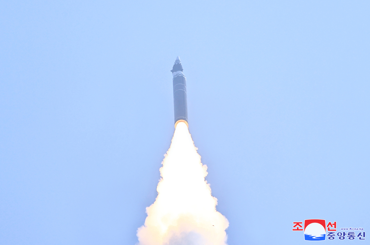 Tên lửa đạn đạo siêu thanh tầm trung được Triều Tiên phóng thử vào năm 2025. Ảnh: KCNA