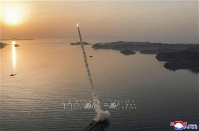Vụ phóng thử tên lửa đạn đạo chiến thuật Hwasongpho-11 Ra mang đầu đạn chùm của Triều Tiên, ngày 19/4/2026. Ảnh: Kyodo/TTXVN