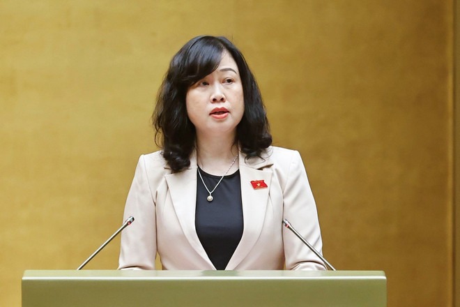 Bộ trưởng Bộ Y tế Đào Hồng Lan trình bày tờ trình. Ảnh: TTXVN