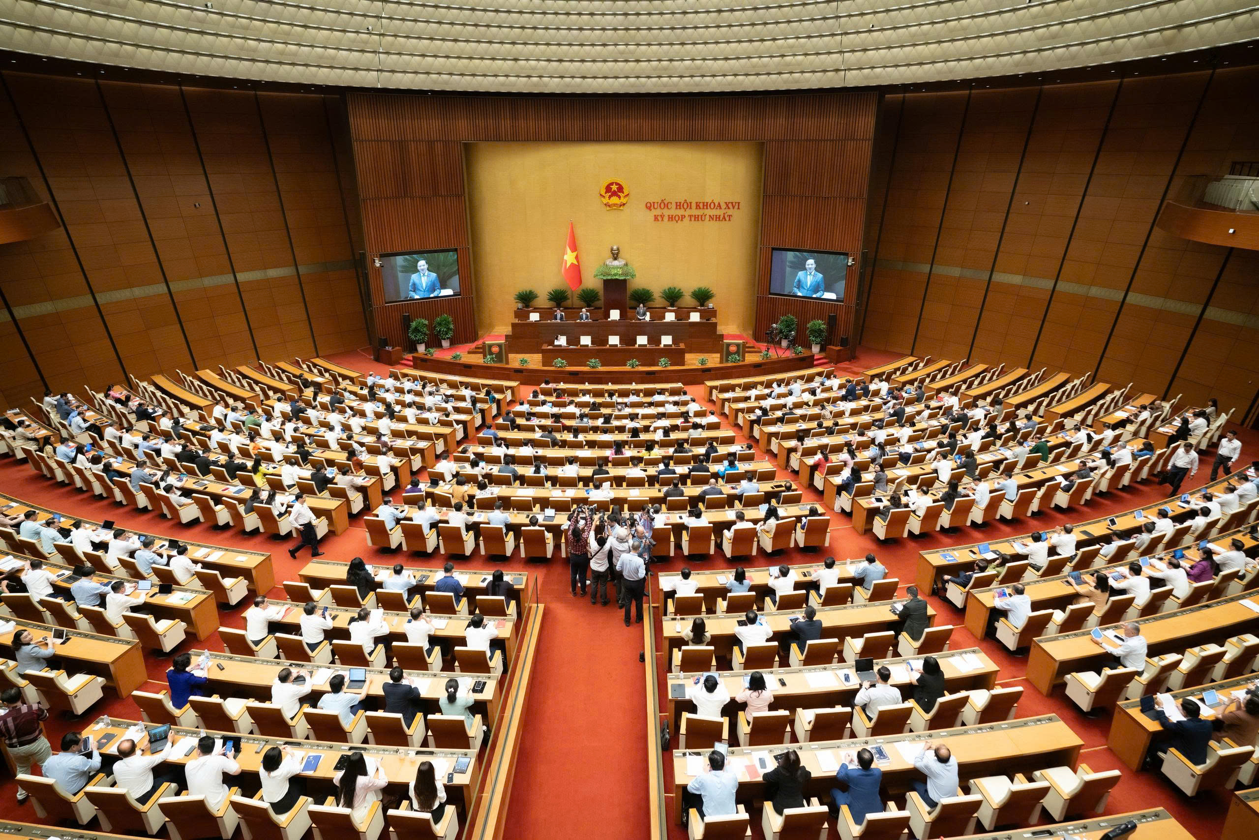 Quang cảnh phiên họp sáng 20/4 kỳ họp thứ nhất, Quốc hội khóa XVI. Ảnh: Media Quốc hội.