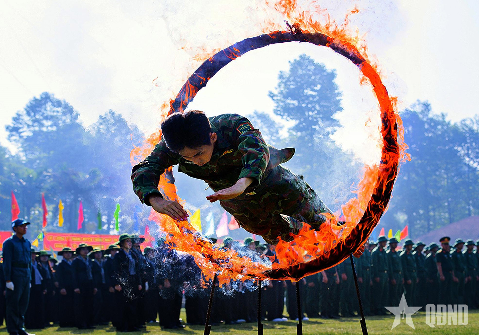 Chiến sĩ trinh sát thể hiện bản lĩnh thép khi đối mặt với vòng lửa.