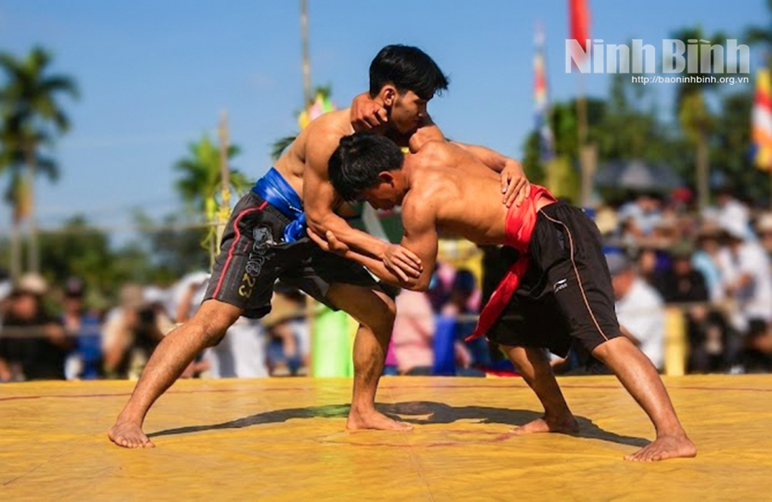 Ở xã Ninh Giang, tục “Cướp trái” ở đền Tuân Lục tái hiện cảnh luyện binh của danh tướng Đỗ Công Hạo thời Lê sơ. Luật chơi tại đây rất nhân văn: người tham gia chỉ được nắm khố đối phương để kéo, tuyệt đối không đánh nhau hay ôm chân tay, nhằm giữ hòa khí xóm làng. Tương tự, tại xã Đồng Thái, lễ hội Đền Ngọc Chấn tổ chức bơi chải diễn lại tích “Giang chiến” của Tướng quân Đặng Dung trên sông Đáy với 3 vòng bơi tượng trưng cho 3 vòng giao chiến lịch sử.