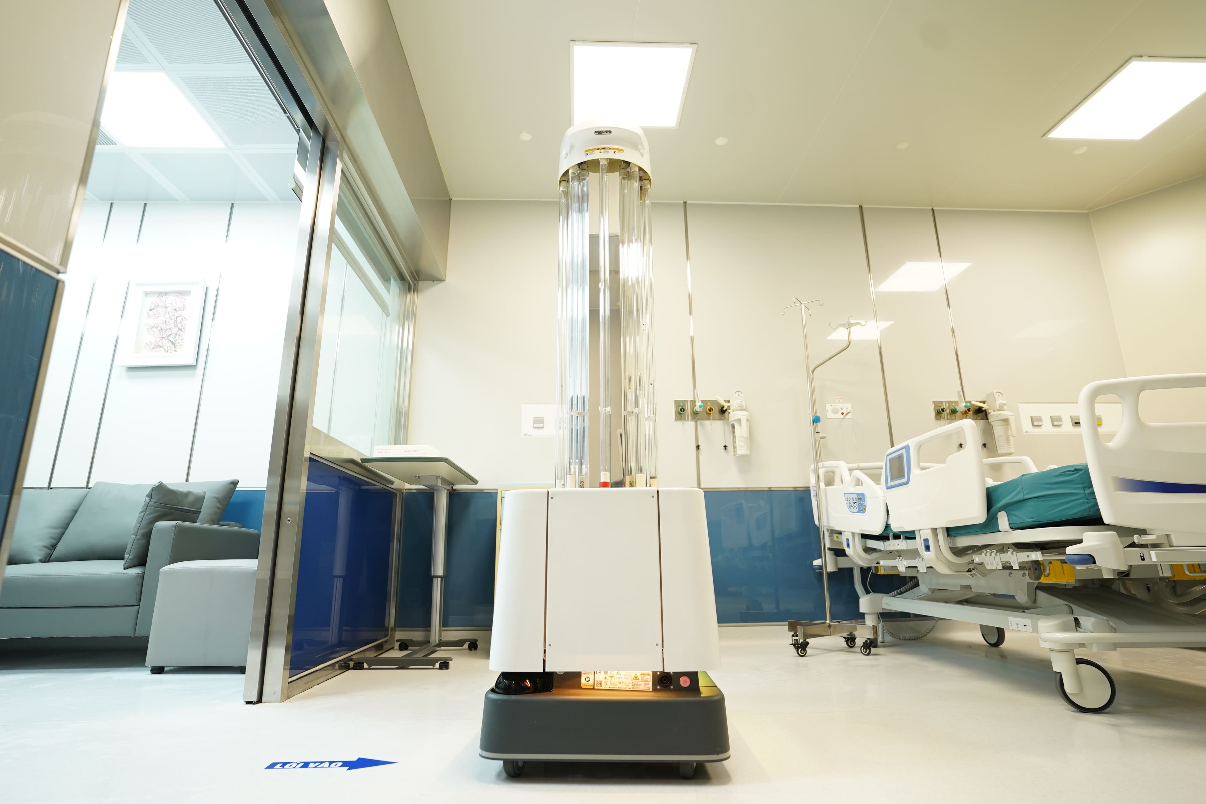 Robot này sử dụng tia UV-C để tiêu diệt vi sinh vật trên mọi bề mặt. Ảnh: BVCC.