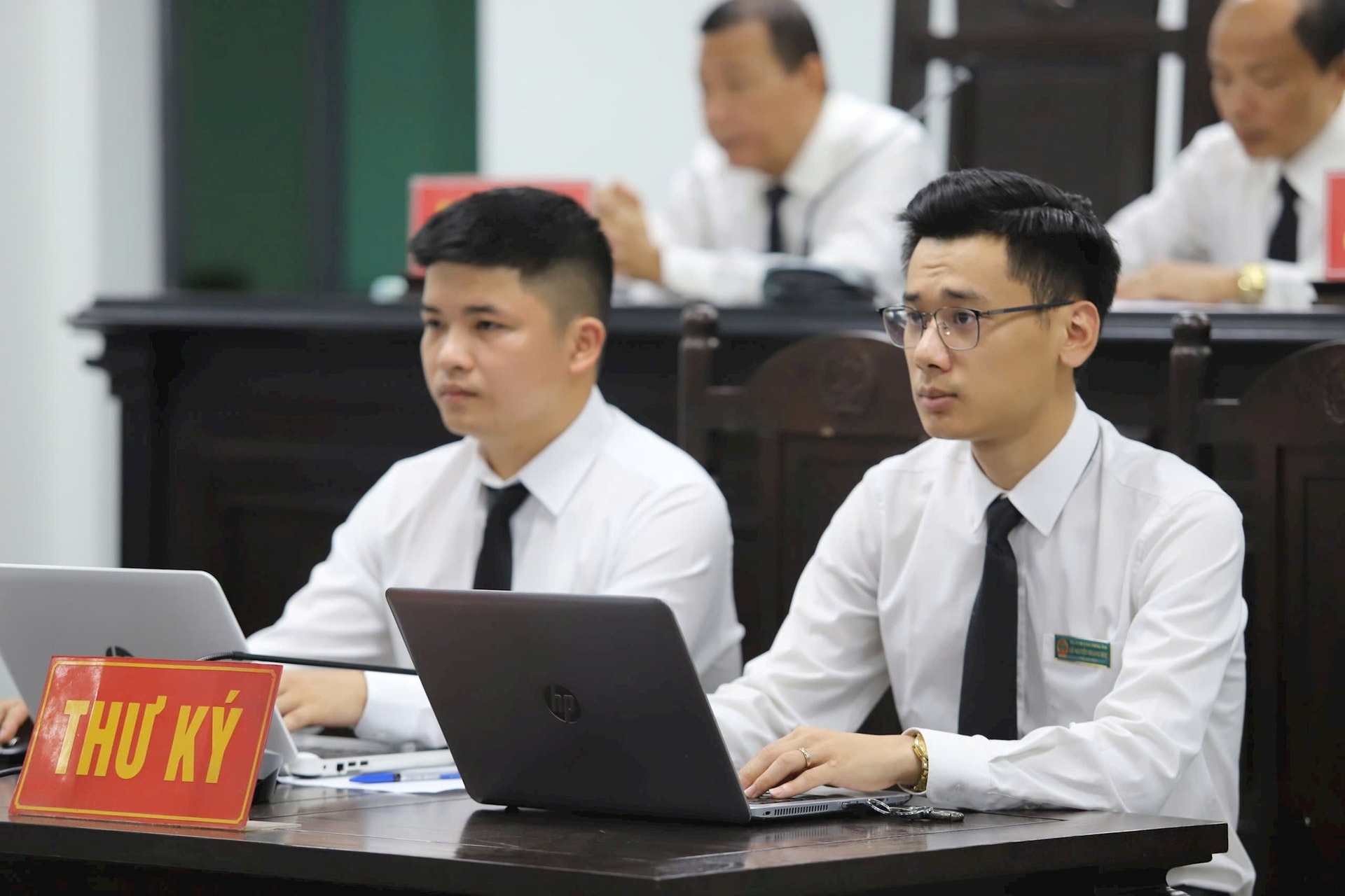 Với số lượng bị cáo lên tới 117 người, thư ký phiên tòa phải làm việc liên tục để ghi chép đầy đủ các tình tiết lời khai của từng bị cáo...