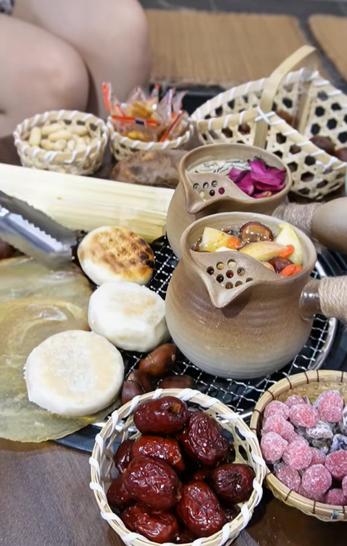 Bạn còn nhớ trà sữa nướng Vân Nam "hot điên đảo" vào năm 2023? Set trà nướng đang gây sốt hiện tại có thể coi là phiên bản nâng cấp. Ban đầu, một số cửa hàng thường tặng kèm đồ ăn vặt dạng như ô mai, snack... Cuối năm 2024, thực đơn đồ ăn được cập nhật như hạt dẻ, bánh hạt dẻ, cơm lam, khoai lang mật... kèm mỗi bàn trà là một bếp than nhỏ để tiện cho khách ngồi nói chuyện, nhâm nhi, sưởi ấm khi trời chuyển lạnh. Trào lưu này đang trở lại vào mùa Đông này tại Hà Nội.