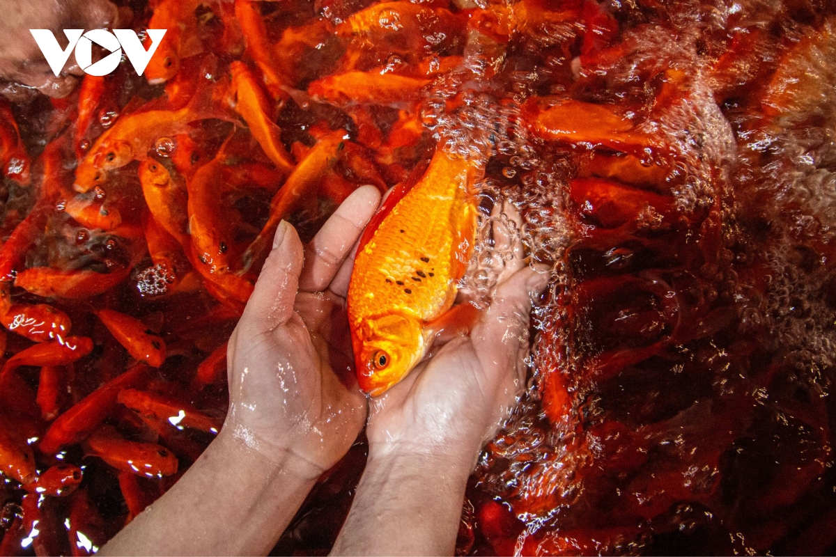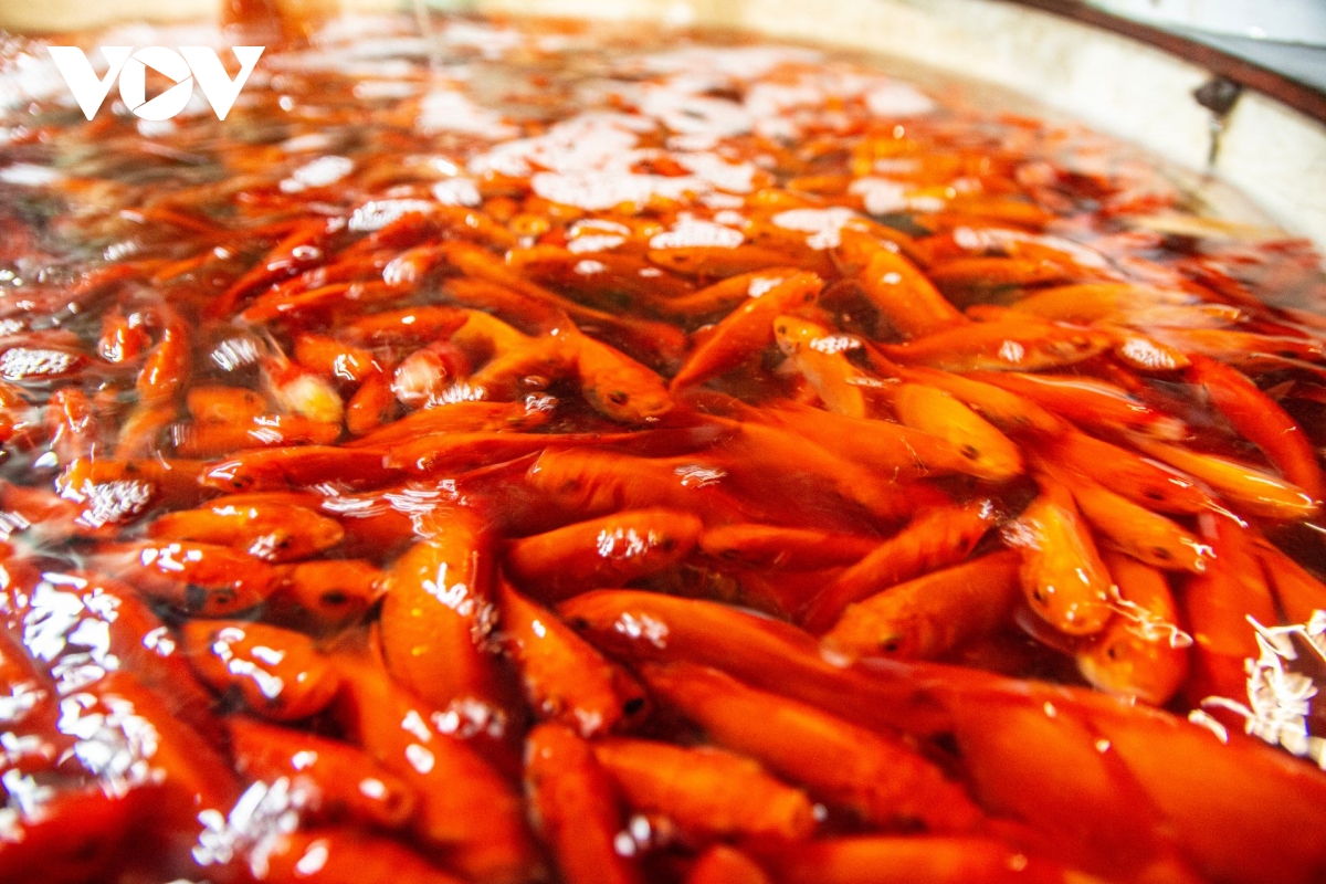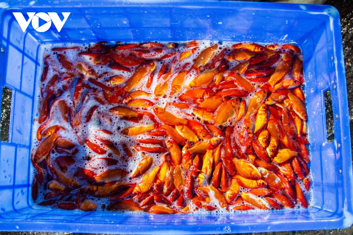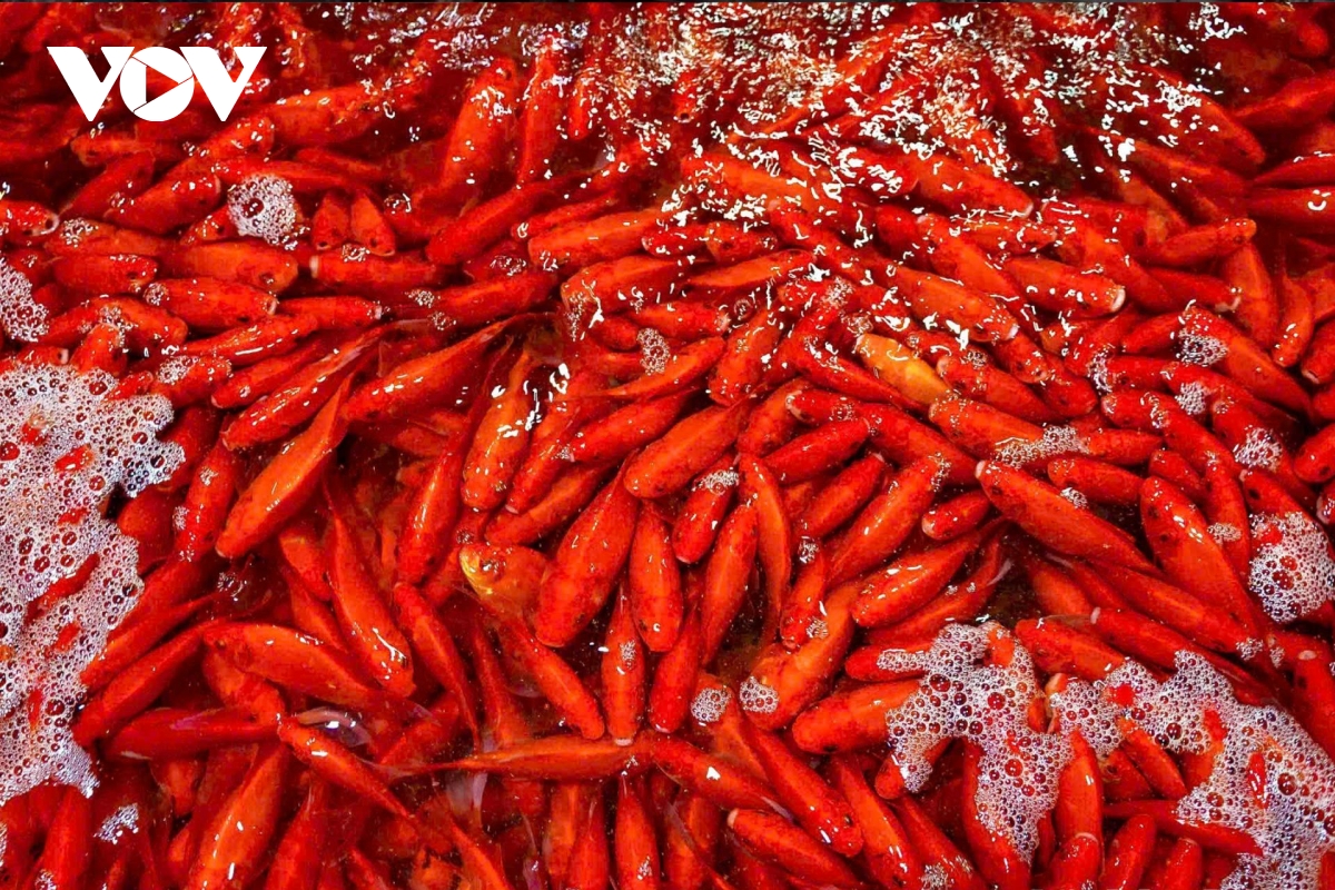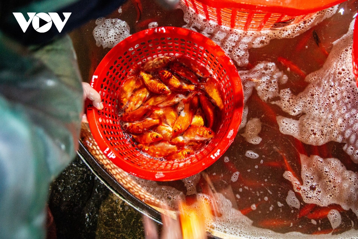 Tại đây, cá được phân loại theo kích cỡ, những con yếu hoặc chết bị loại bỏ, nhằm bảo đảm cá bán ra đều khỏe mạnh, phục vụ nhu cầu người dân mua về “tiễn” ông Táo về trời.
